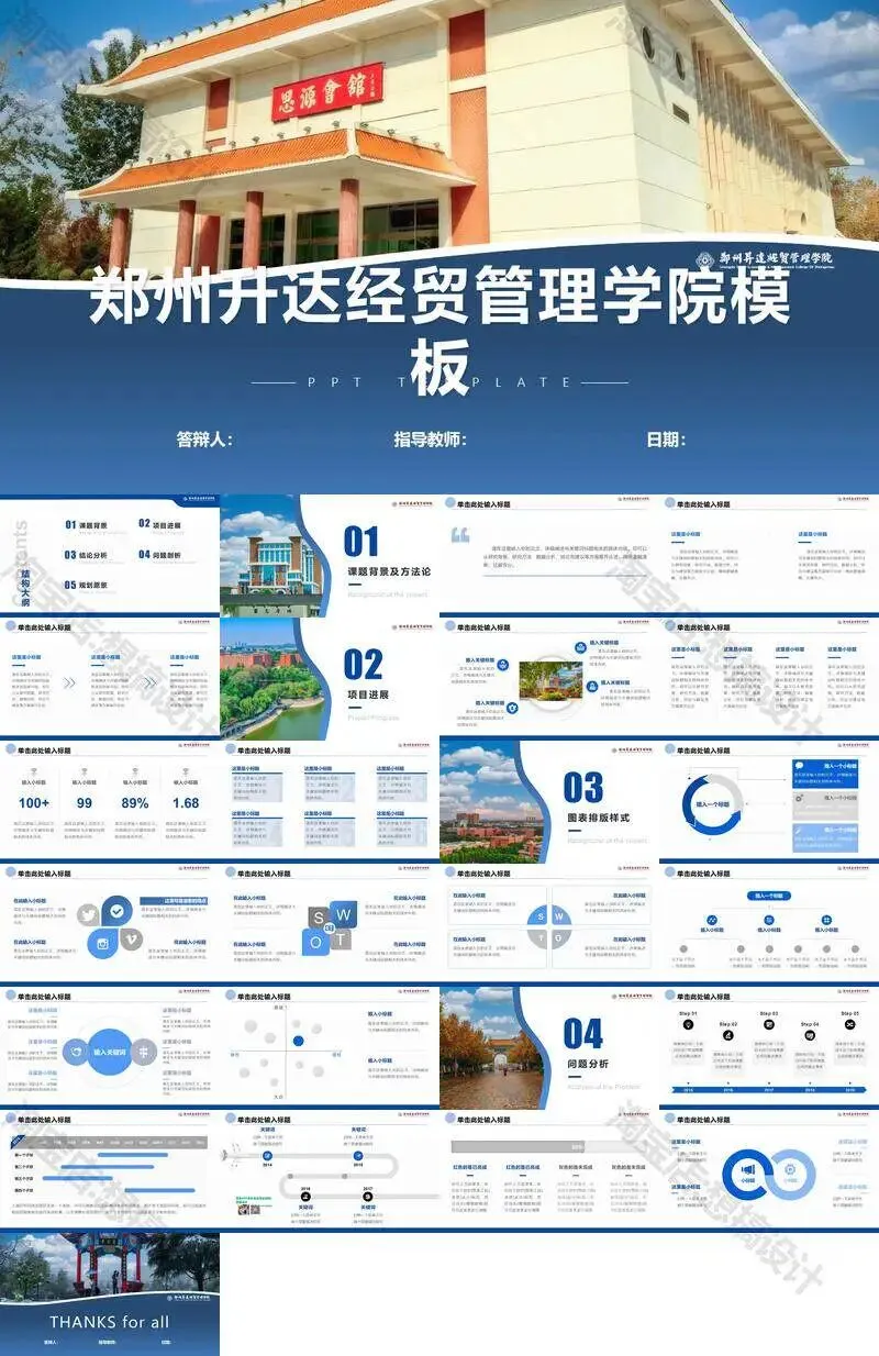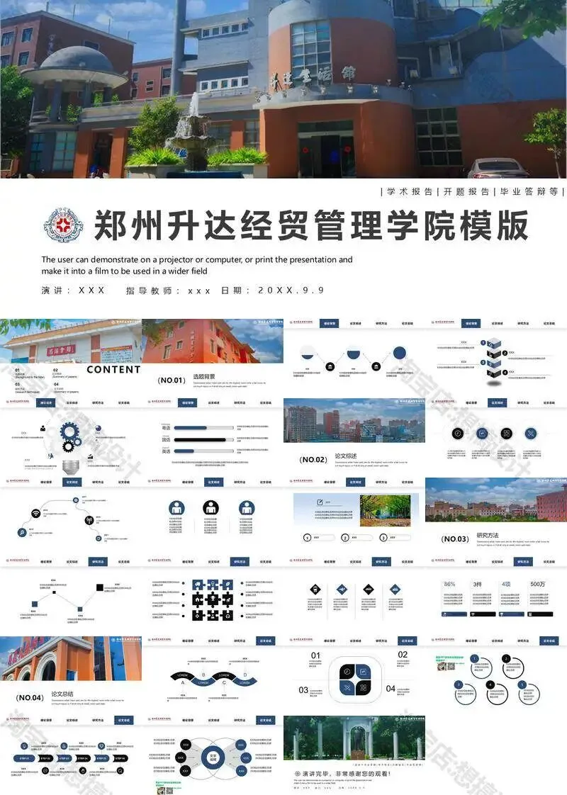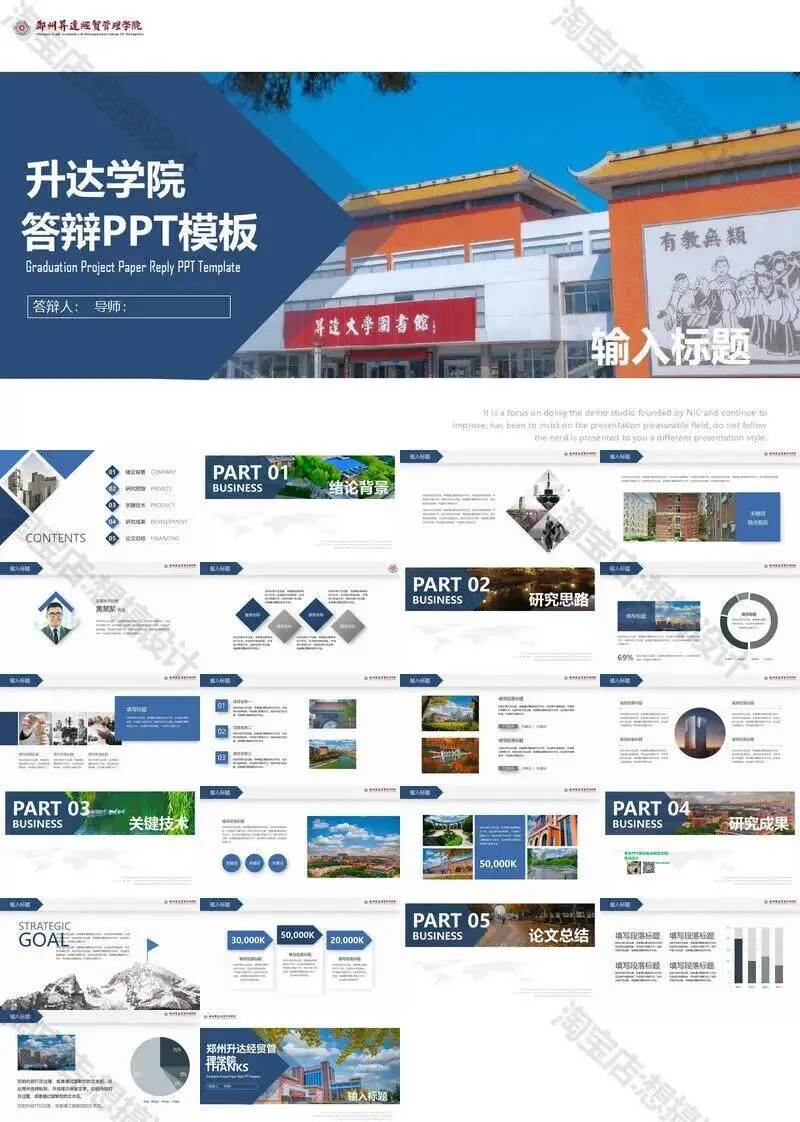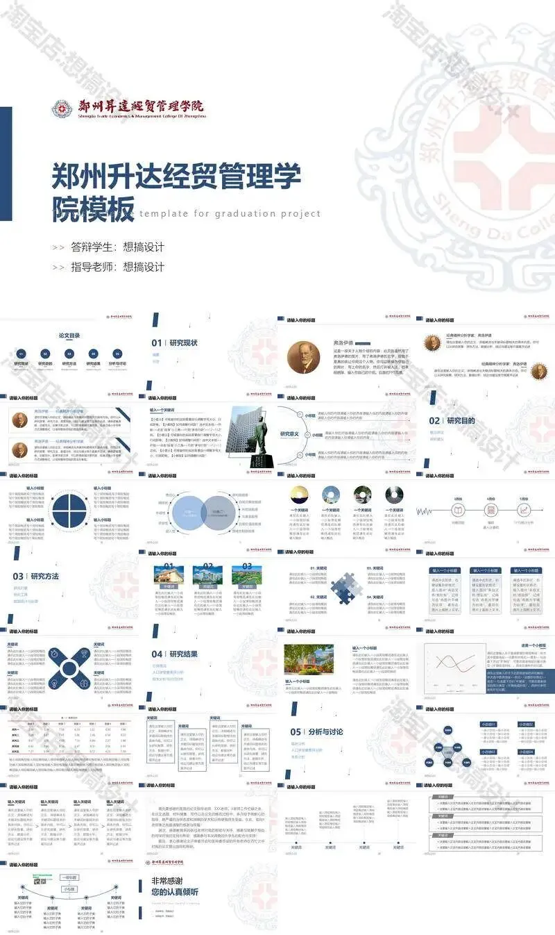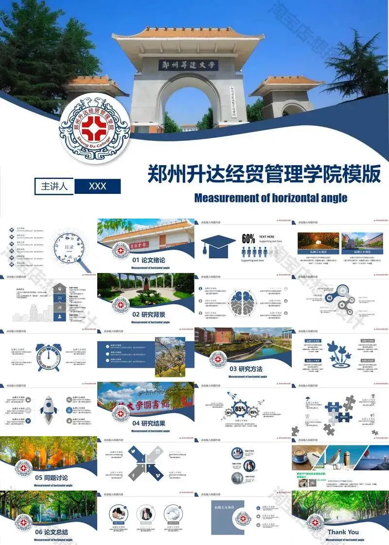 郑州升达经贸管理学院毕业答辩PPT模板汇报幻灯片课件总结