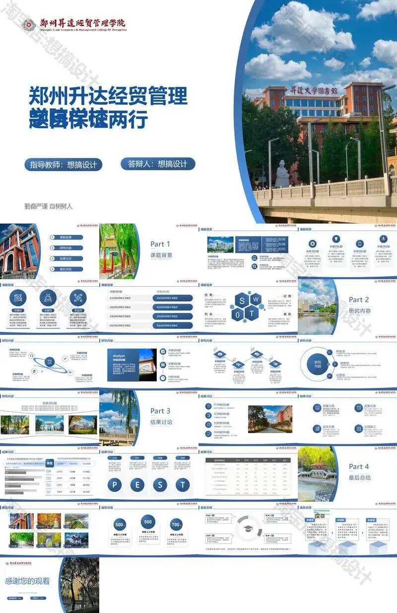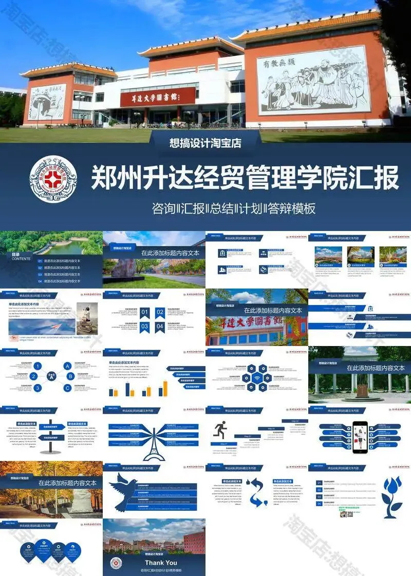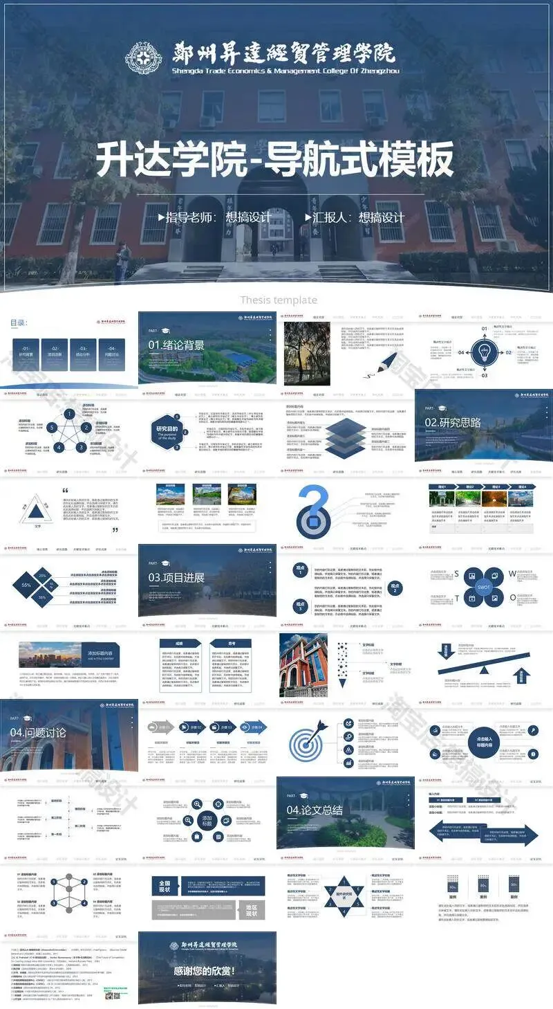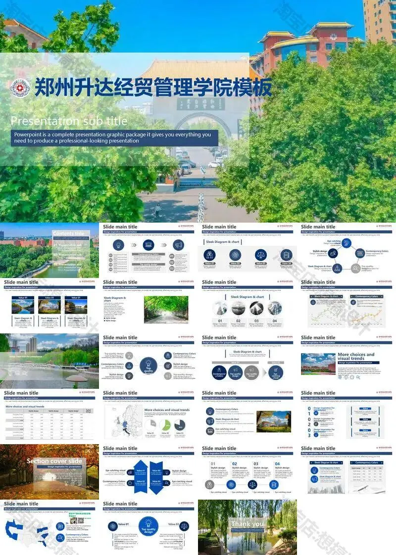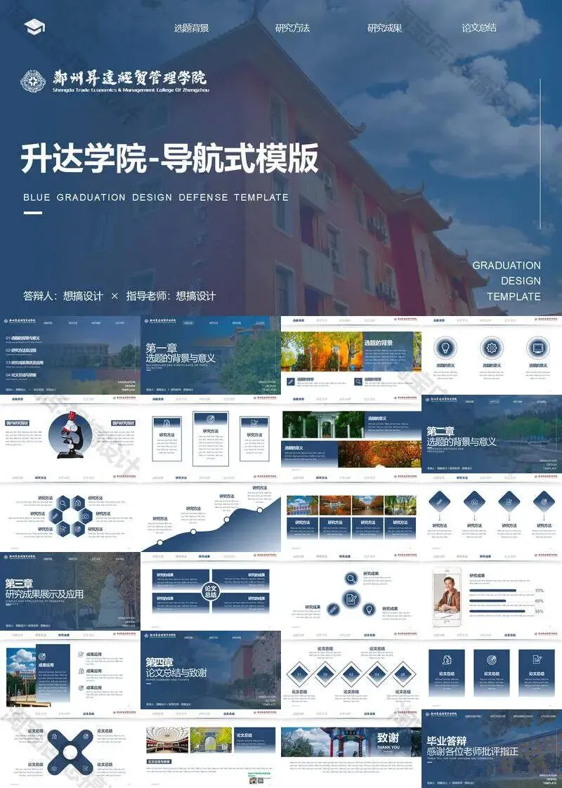 郑州升达经贸管理学院毕业答辩PPT模板汇报幻灯片课件总结