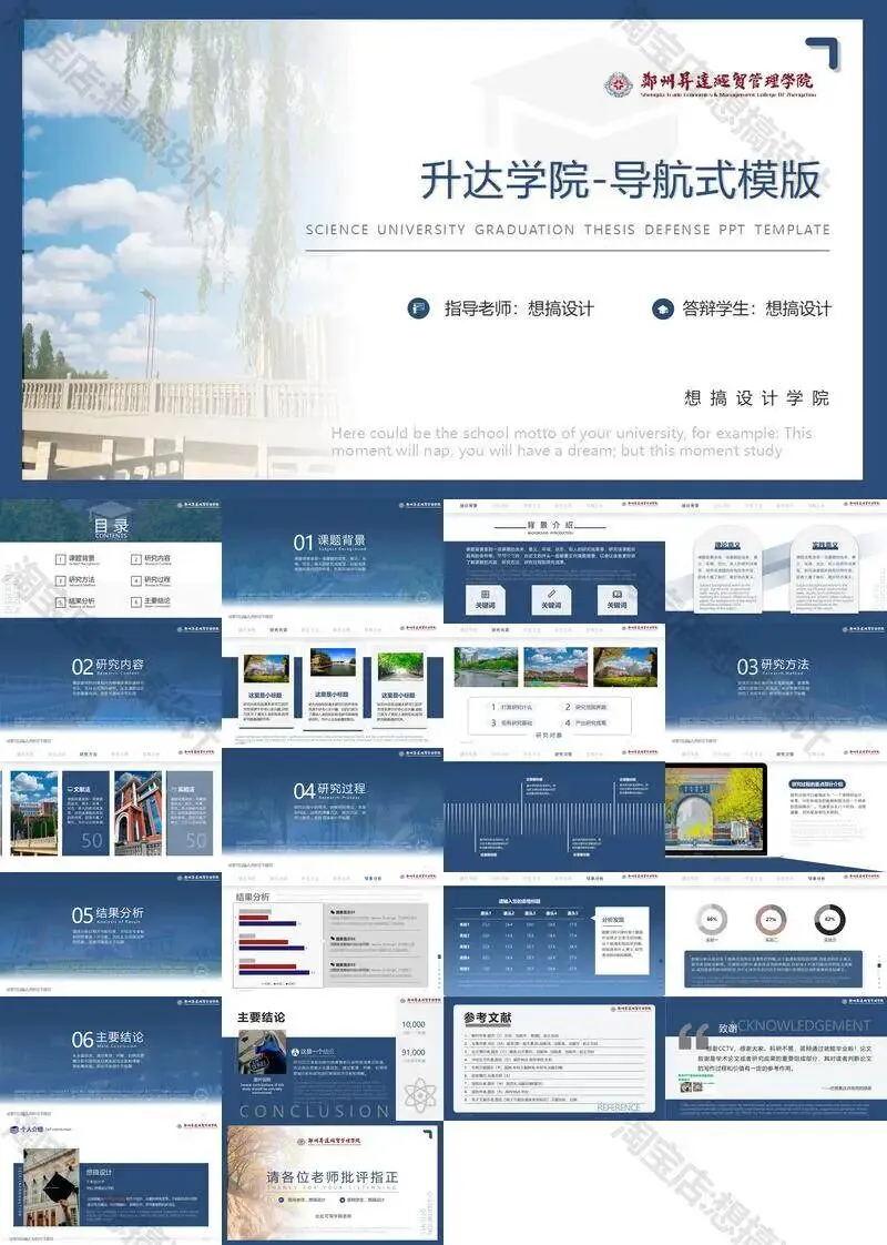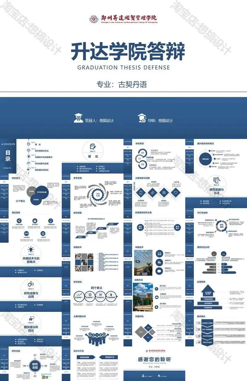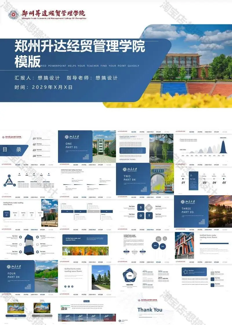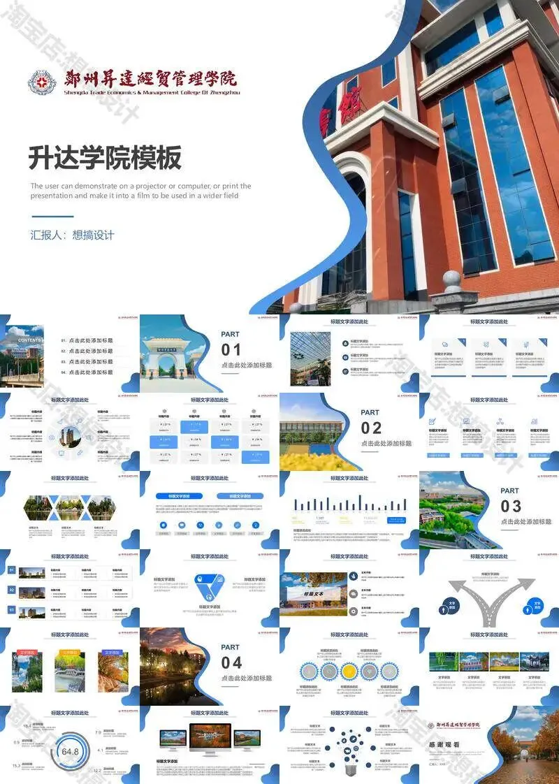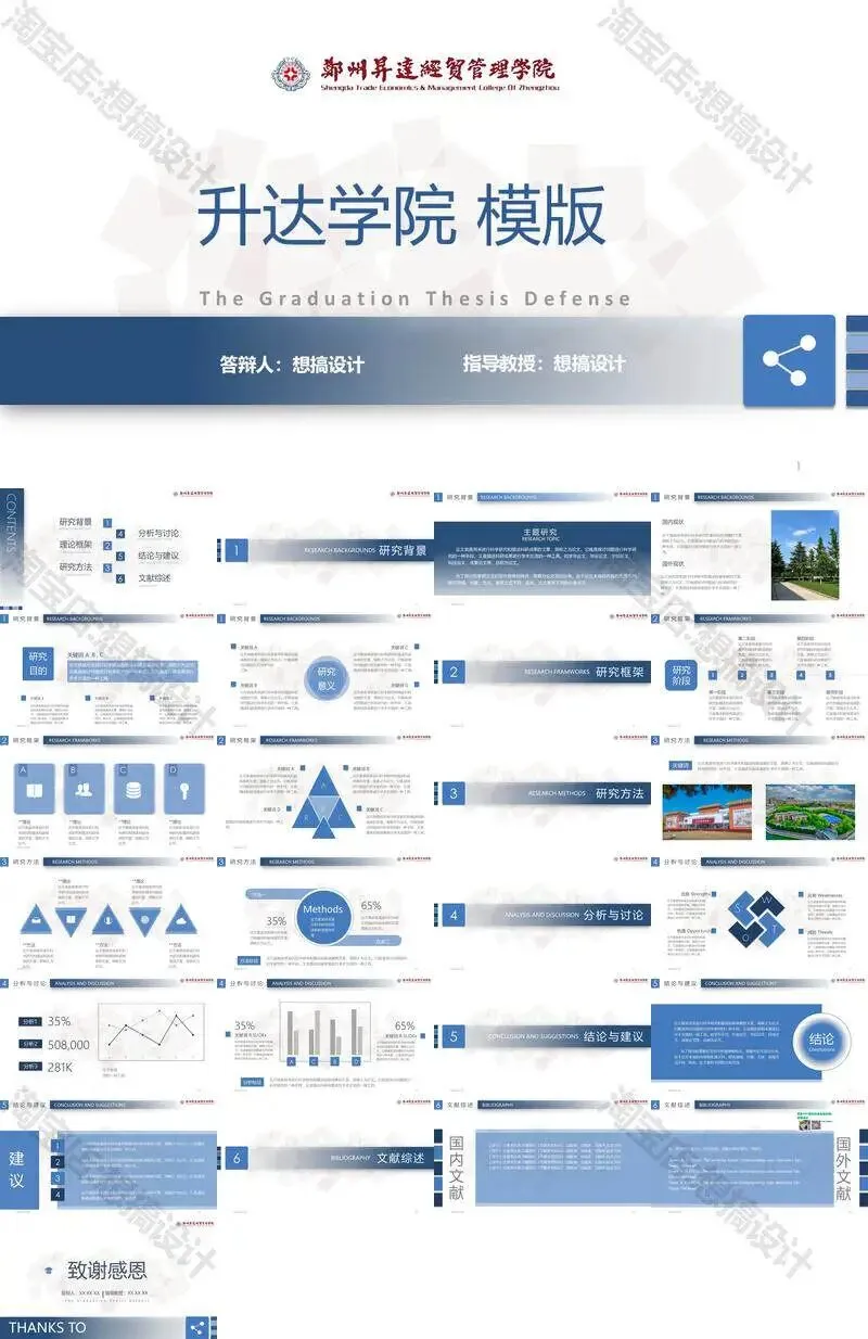 郑州升达经贸管理学院毕业答辩PPT模板汇报幻灯片课件总结