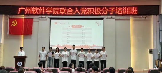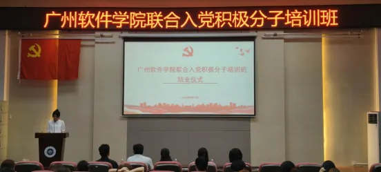 本网讯 赓续红色血脉,启航奋进征程。2026年4月12日下午,广州软件学院联合入党积极分子培训班结业仪式在礼堂一隆重举行。数字传媒学院党委书记许恒梅、广州软件学院青马党支部书记余润珠、外国语学院学生党支部书记刘歆、数字经济管理学院学生第六党支部书记韩榉以及数字传媒学院学生第一党支部书记麦天颖出席本次结业仪式,全体培训班学员共同参加了此次结业仪式。