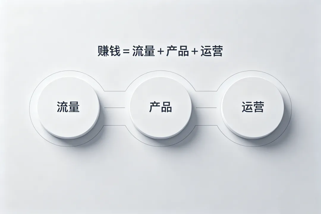 赚钱 = 流量 + 产品 + 运营