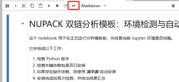 查看输出,如果确认包没问题则可以运行模板。如果缺少,会自动开始安装,这里使用清华源。