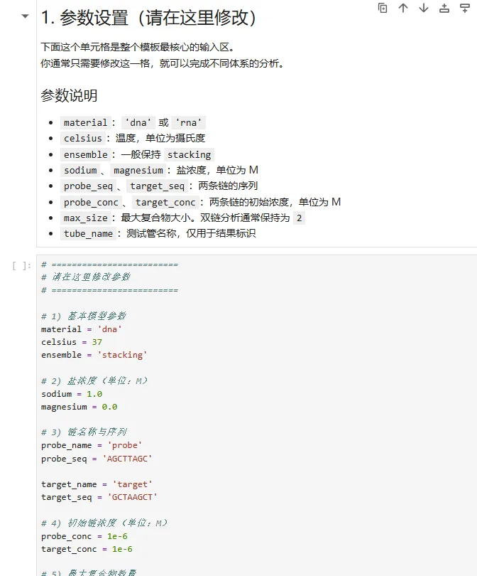 这个模板适用于两条链的计算,可以是DNA/DNA,或者RNA/RNA。