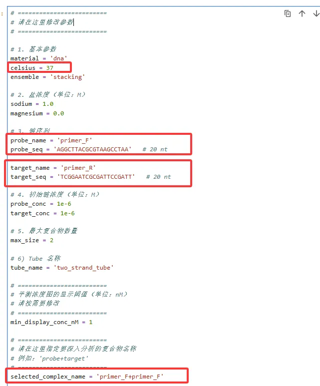 这里修改温度、序列的名字、目标复合物的名字(选择要查看的复合物)。