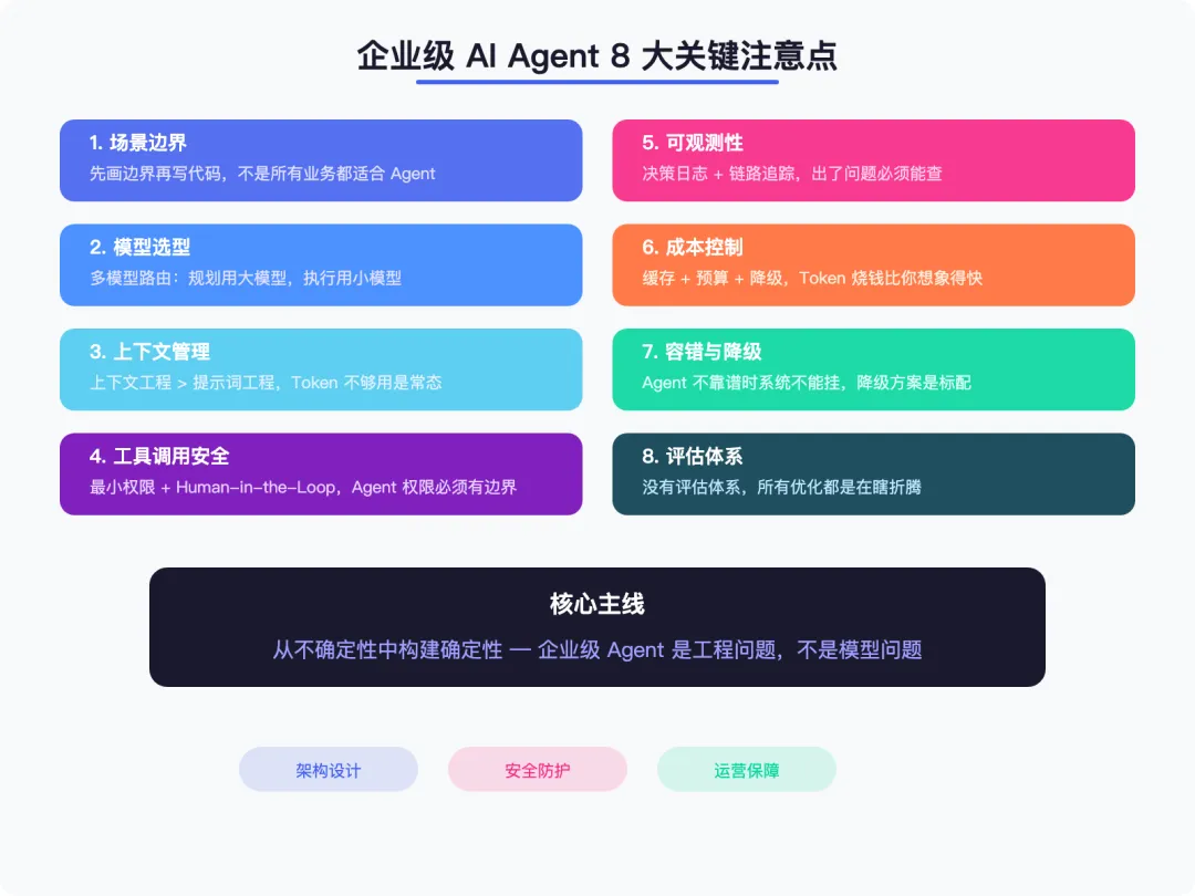 记住,企业级 Agent 是一个工程问题,不是一个模型问题。模型会越来越强,但工程上的这些关注点,不会因为模型升级而消失。