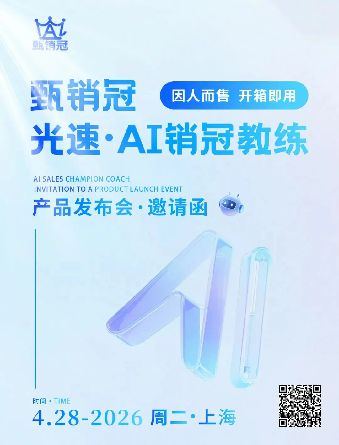 4月28日,我们将举办甄销冠新品发布会,首次完整揭晓这套AI销售赋能解决方案的全部实力,为销售行业带来一场真正的效率革命。