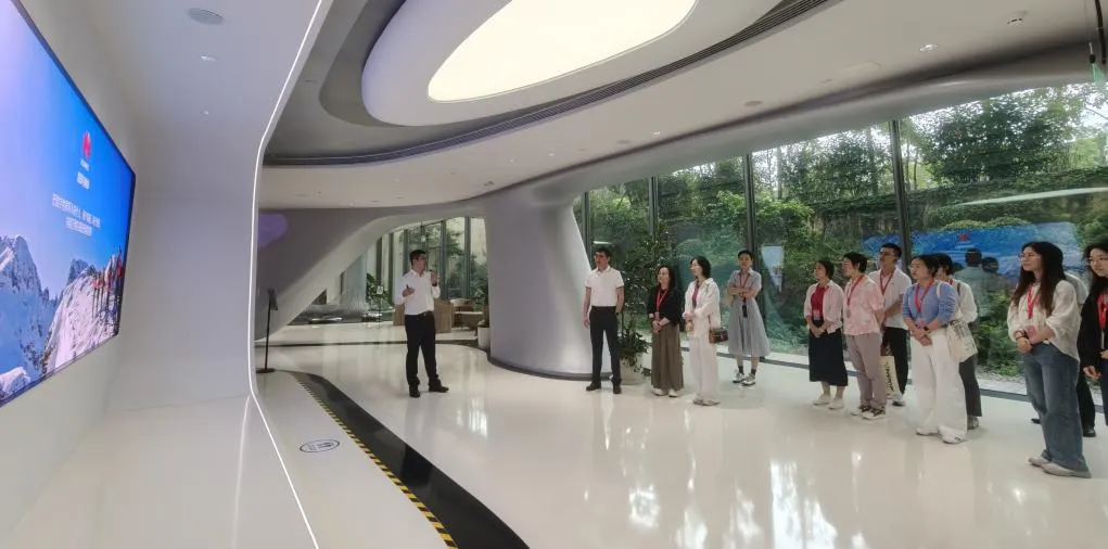 支部首先来到深圳华为坂田基地。在华为相关负责人的引导下,支部成员参观了行业客户对话室,重点了解华为面向基础教育、高等教育和科研领域推出的数智化产品与解决方案。通过近距离观摩和现场讲解,大家直观认识了华为在教育数字化领域从底层基础设施到顶层生态服务的完整体系,深刻感受到数字化技术在赋能教学、优化管理、提升治理效能等方面的现实价值,也进一步体悟到一个组织“打基础、利长远”的正确发展理念。