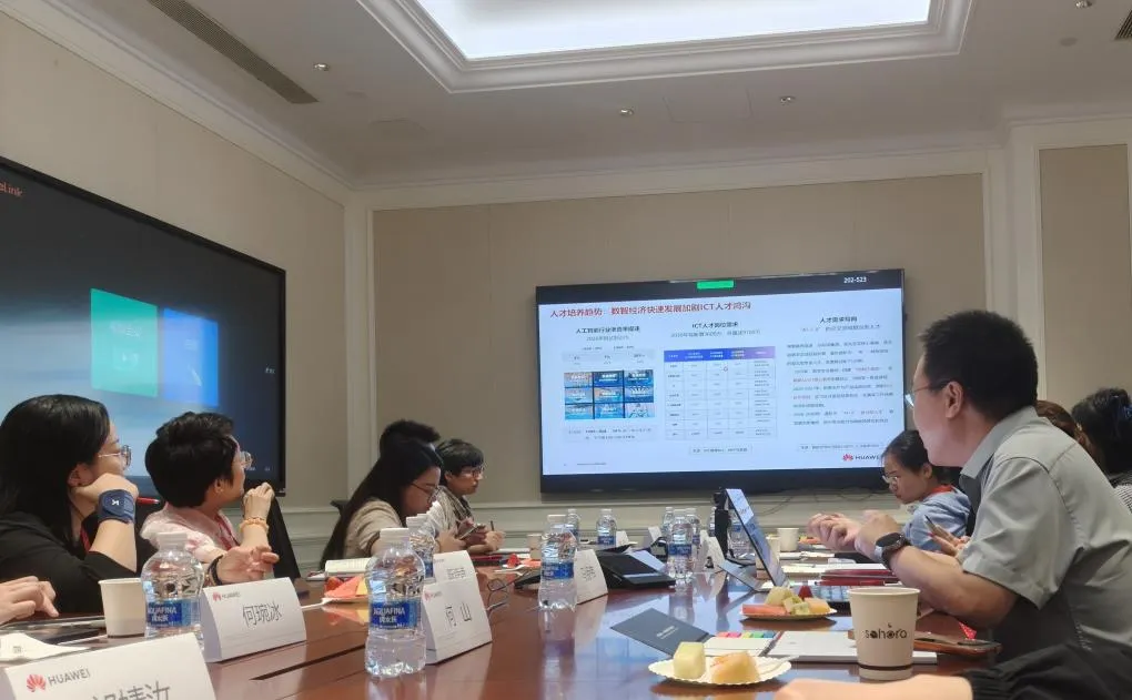 随后,双方围绕人工智能时代背景下的教育发展展开交流。华为相关负责人系统介绍了公司在科研协同与人才培养方面的实践与规划,阐释了其坚持深耕底层技术基座的理念和“为世界提供第二选择”的战略愿景与责任担当。此外他还分享道,在人工智能技术迅猛发展的背景下,人文社科学科有其独特优势,当前科技前沿也在积极探索科技与人文社科领域的融合。