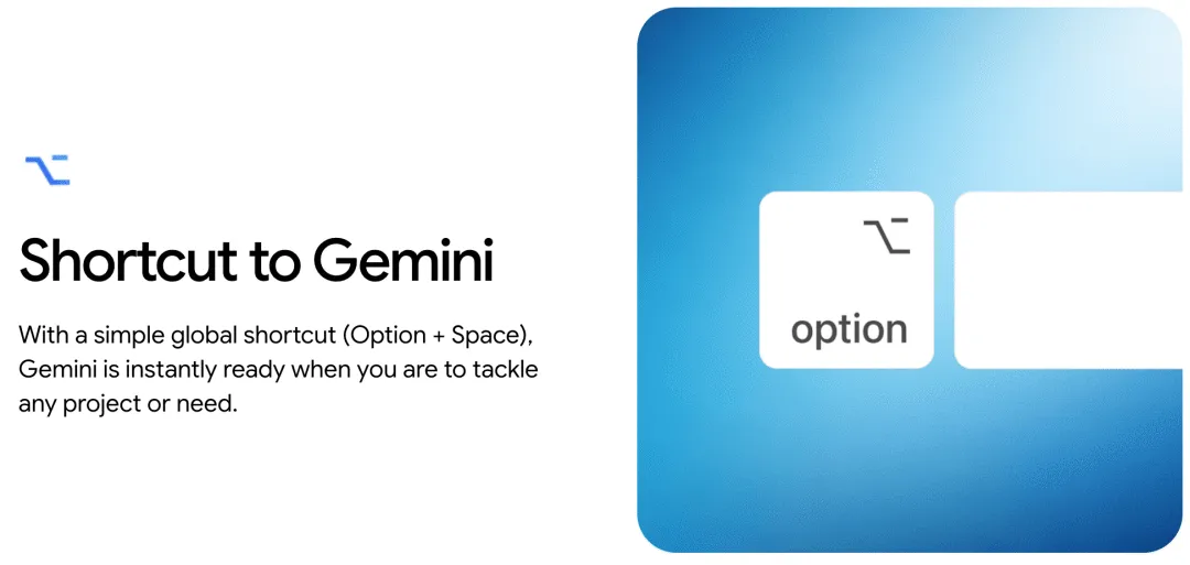 用户可通过 Option + Space 快速调出 Gemini,无需切换标签页或打开浏览器。