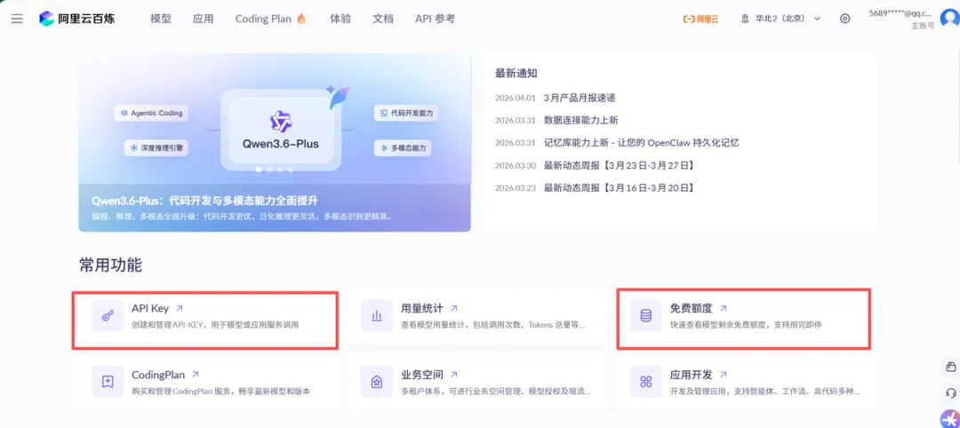 本篇以阿里云百炼为例,因为它家的免费额度给得比较大方,模型种类也多。