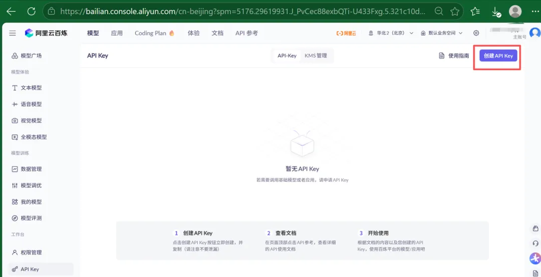 3. 创建并获取 API Key