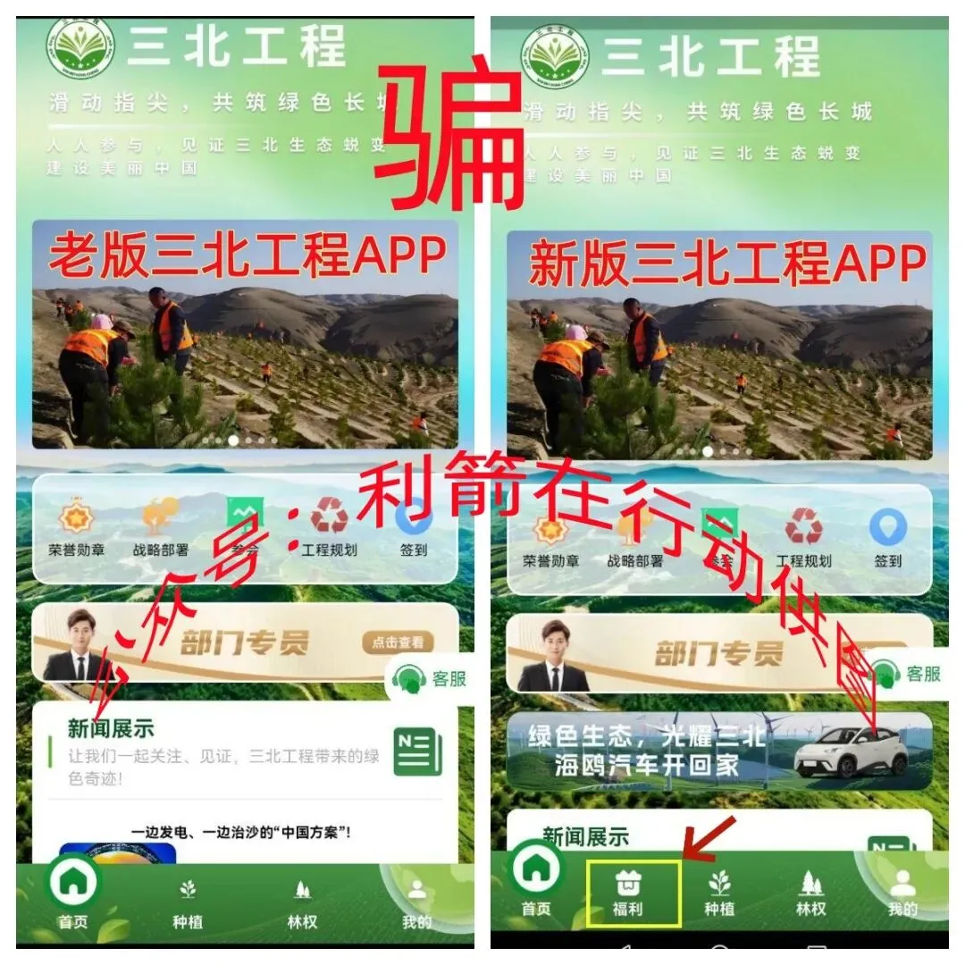 老版三北工程APP与新版版三北工程APP中看出页面几乎是一样的,但是在新版版三北工程APP中增加了“福利”项目?这“福利”项目究竟怎么回事?