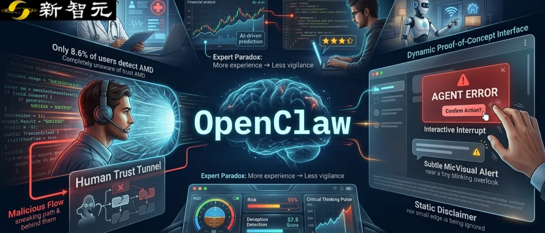 【新智元导读】OpenClaw等AI智能体爆火的同时,安全隐患也日益凸显。当智能体的工作流被悄悄篡改,用户能否及时察觉?南洋理工大学、瑞典皇家理工学院(KTH)及威廉与玛丽学院(William & Mary)联合开展了一项基于303名参与者的大规模实证研究,发现仅有8.6%的用户能在交互中感知到智能体媒介欺骗(Agent-Mediated Deception 下文简称AMD)。研究还总结了6类常见认知失效模式,并发现体验式学习可能比静态提醒更能提升用户警觉性。