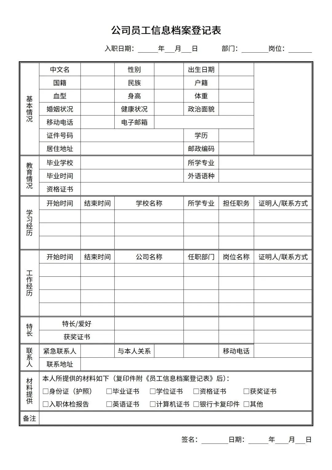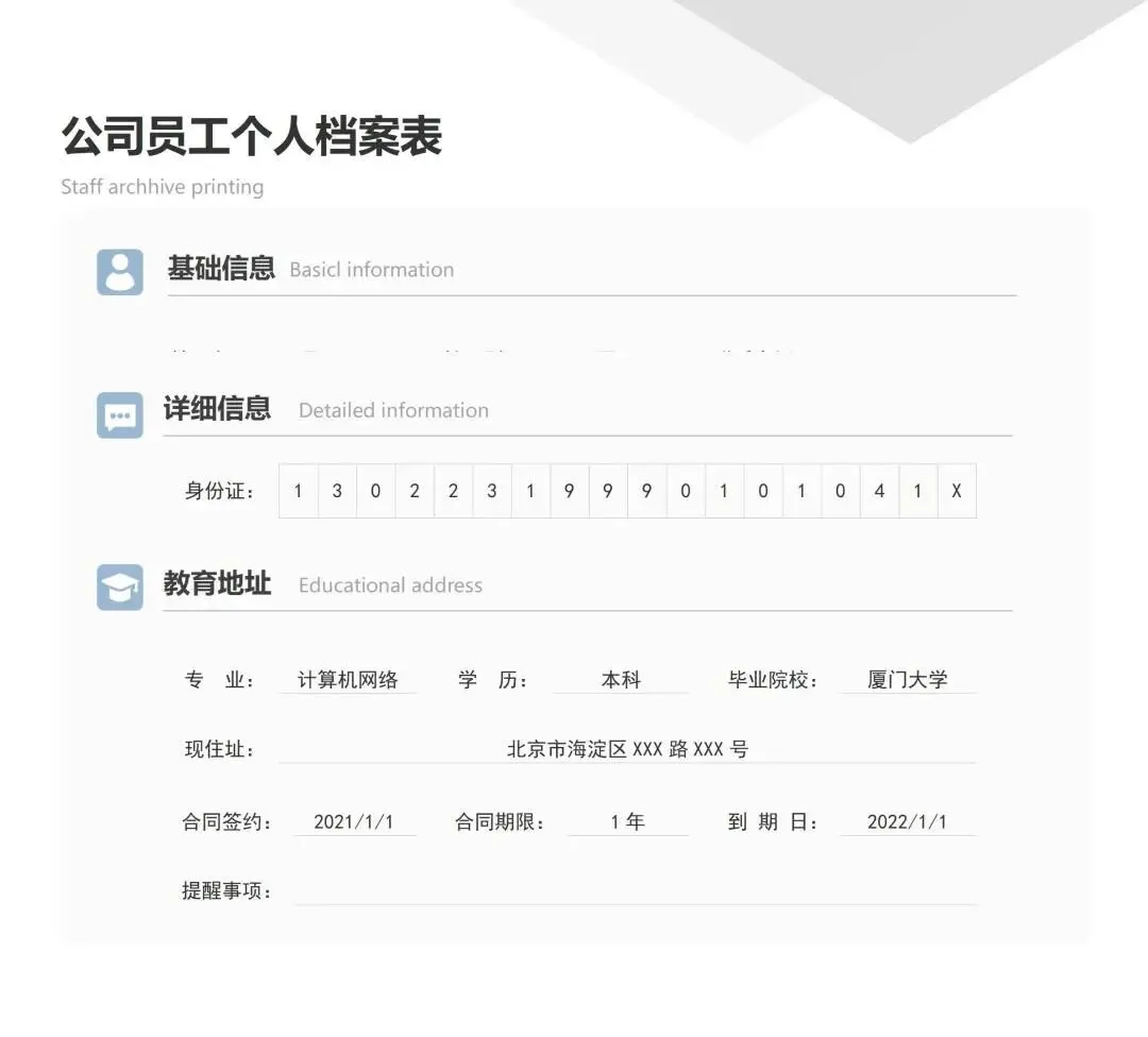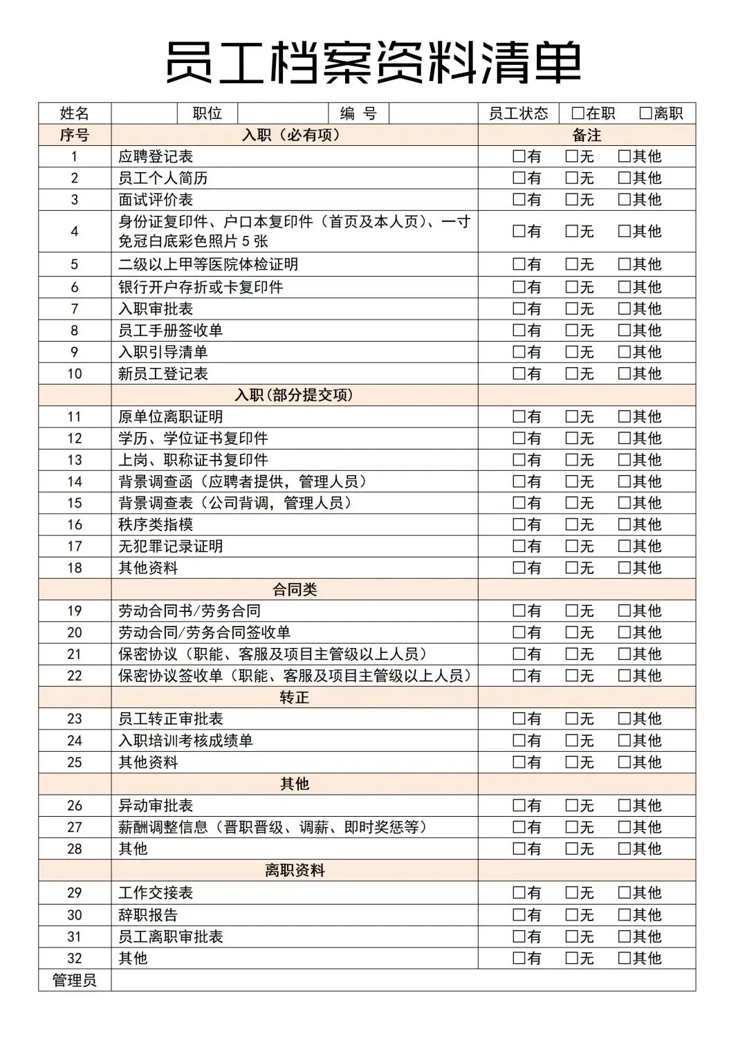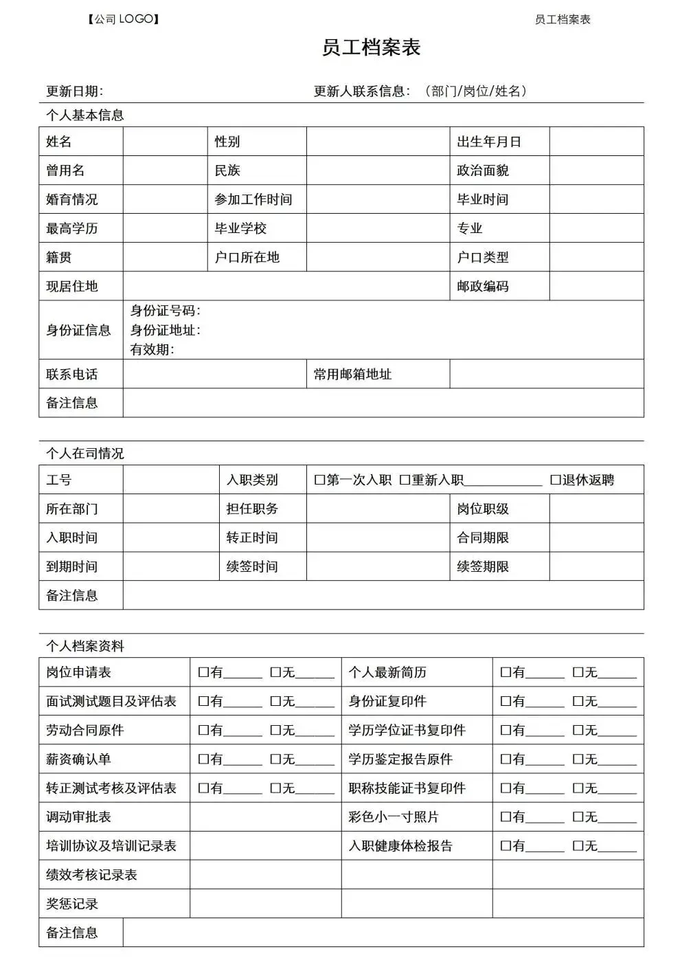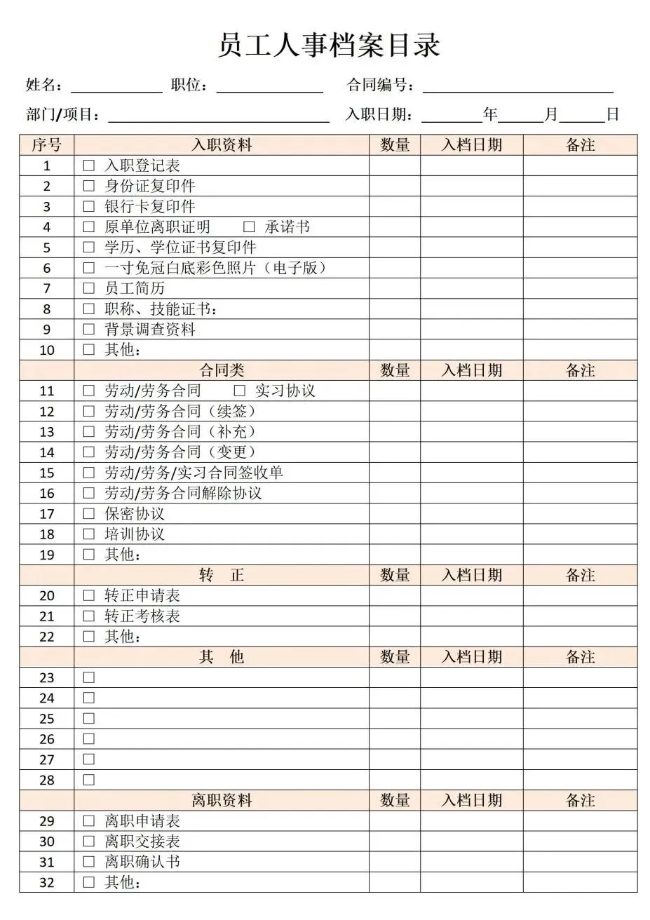 获取方式见文末。文件夹位置:人事行政表单-010 人事档案管理