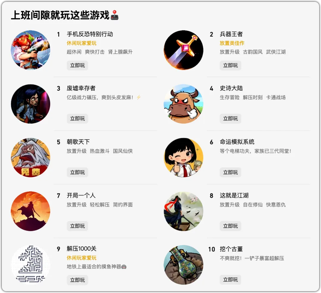 今天小溪带来的是「上班间隙就玩这些游戏」的小游戏合集,接下来小溪就来开始介绍,不知道大家都体验过哪些呢?