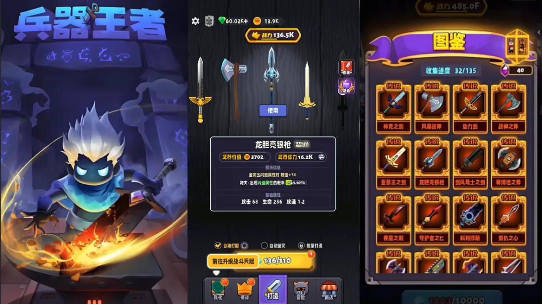 武侠迷的摸鱼锻造局!以“神兵锻造+江湖冒险”为核心的放置类佳作,玩家化身兵器传承者,在奇幻大陆收集材料、打造专属神兵。从寻器、造器到用器的完整循环,搭配武侠江湖的古韵国风,放置挂机也能稳步变强。不用费脑也能体验一锤定乾坤的快乐,摸鱼时挂着机,神兵就能自动升级!