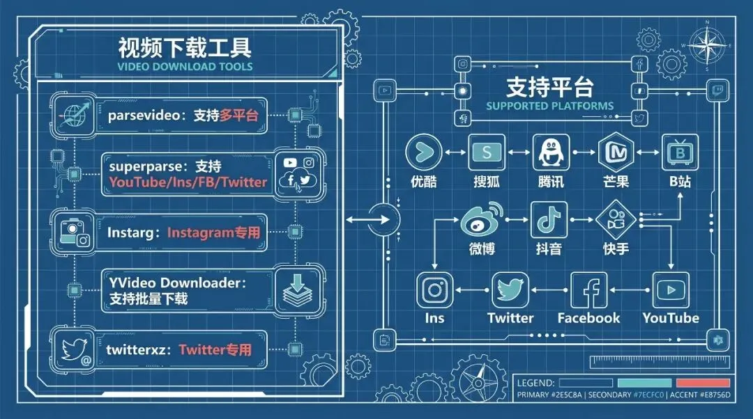 parsevideo:支持的平台挺多,优酷、搜狐、腾讯、芒果、B站、梨视频、微博、头条、抖音、微视、快手、Ins、Tumblr、Twitter,基本都能用。