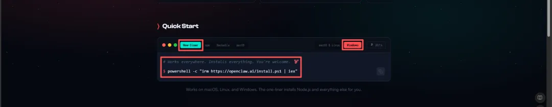 或者去官网(https://openclaw.ai/)复制安装指令: