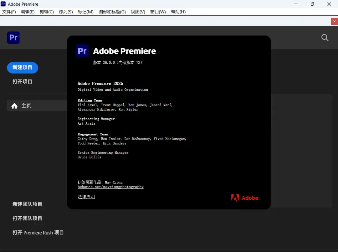 9.双击桌面的【Adobe Premiere Pro 2026】图标启动软件。