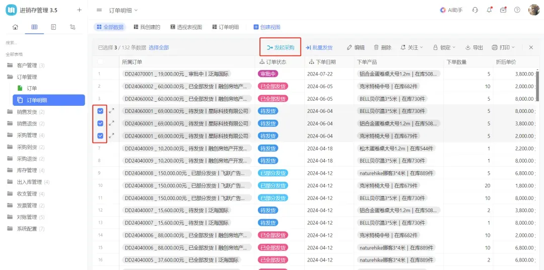 有一个判断框架可以帮你快速定位:先看业务复杂度,流程标准、单仓、固定价格,管家婆或金蝶够用;有多仓、定制报价、跨部门协作,就需要灵活度更高的系统。再看扩展需求,只管进销存选专注进销存的,同时还需要管客户、合同、项目,选能覆盖多场景的平台。最后看服务,第一次上系统的公司,有人带着做成功率高很多。