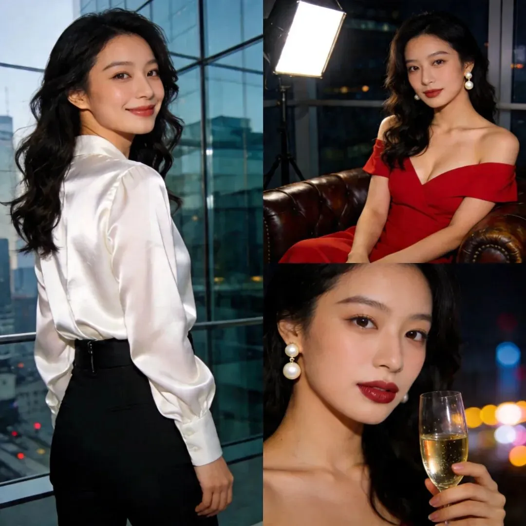 这种气质,来自于每一个细节——发型的弧度、妆容的色调、服装的质感、眼神的情绪、姿态的张力。