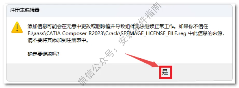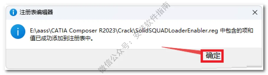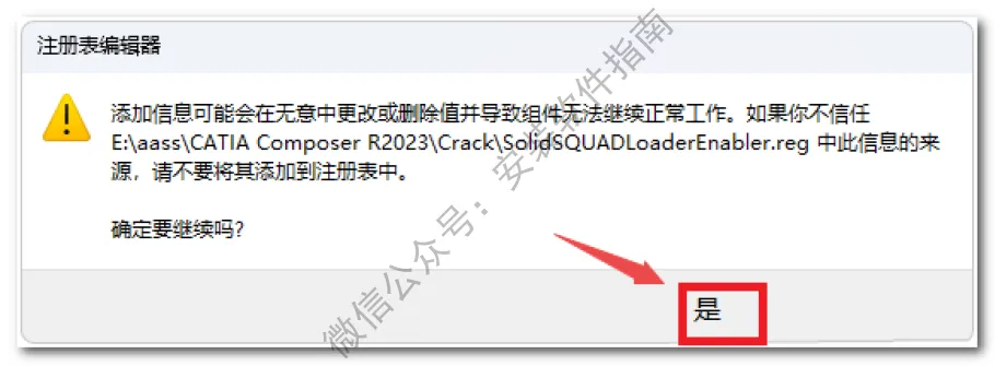 21、返回之前解压的“CATIA Composer R2023”文件夹,双击打开“Crack”文件夹,双击运行“SolidSQUADLoaderEnabler.reg”注册表文件