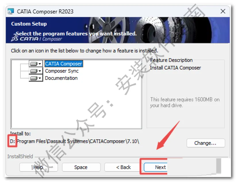 11、选择软件安装路径,建议和教程中的保持一致,本例安装在D盘(将路径地址中的首字符C改为D表示安装到D盘,或者可以在其它磁盘里创建一个新的文件夹,安装路径不要出现中文),点击“Next”
