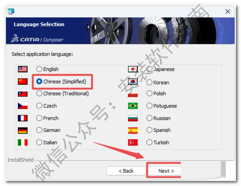 12、勾选Chinese,然后点Next