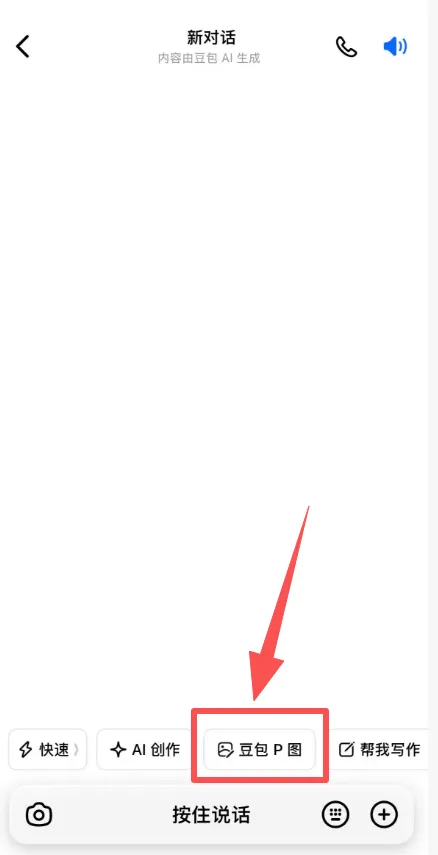 二、在页面下方找到豆包P图按钮,向左滑动任务条,就能看到它了,点击【豆包P图】