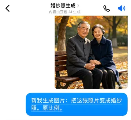 今天我就告诉大家一个好消息!不用花一分钱,一分钟就能搞定,用豆包AI把咱们以前的合影变成美美的婚纱照!