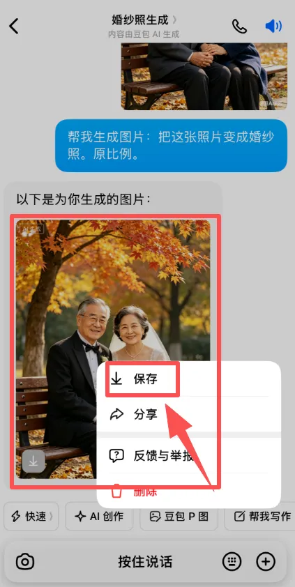 五、生成完成后 → 点击图片 → 长按保存到手机相册