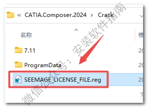 4.返回到刚开始解压出来的文件夹,打开的“Crack”文件夹,双击运行“SEEMAGE_LICENSE_FILE.reg”注册表文件