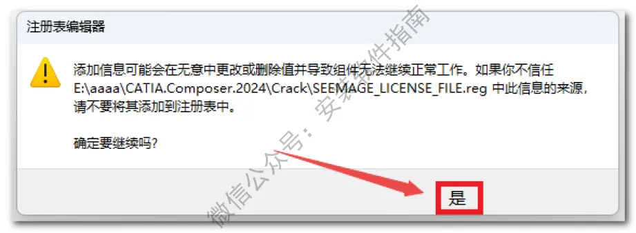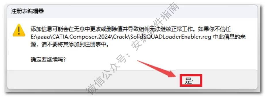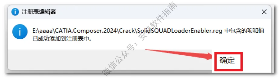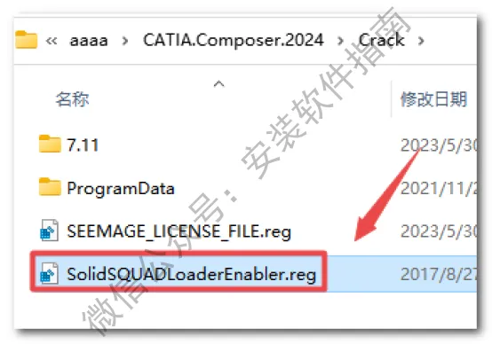 21、返回之前解压的“CATIA.Composer.2024”文件夹,双击打开“Crack”文件夹,双击运行“SolidSQUADLoaderEnabler.reg”注册表文件