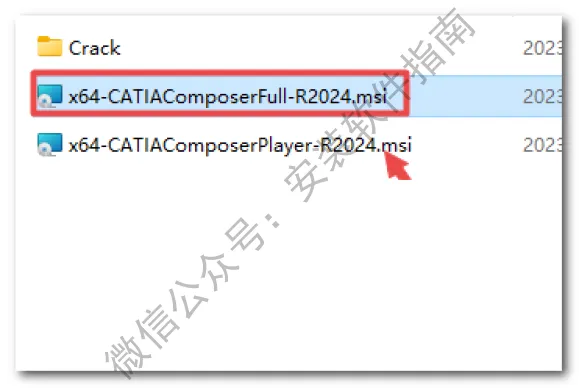 7.返回解压的“CATIA.Composer.2024”文件夹,双击运行“x64-CATIAComposerFull-R2023-T3.msi”安装文件温馨提示:x64-CATIAComposerPlayer-R2023-T3.msi安装教程一样,只能安装其中一种软件
