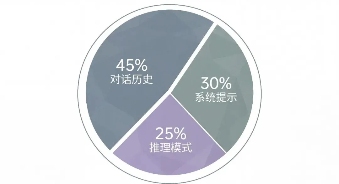 • 对话历史累积占 40-50% • 系统提示词重复发送占 25-30% • 推理模式产生的中间 Token 占 20-25%