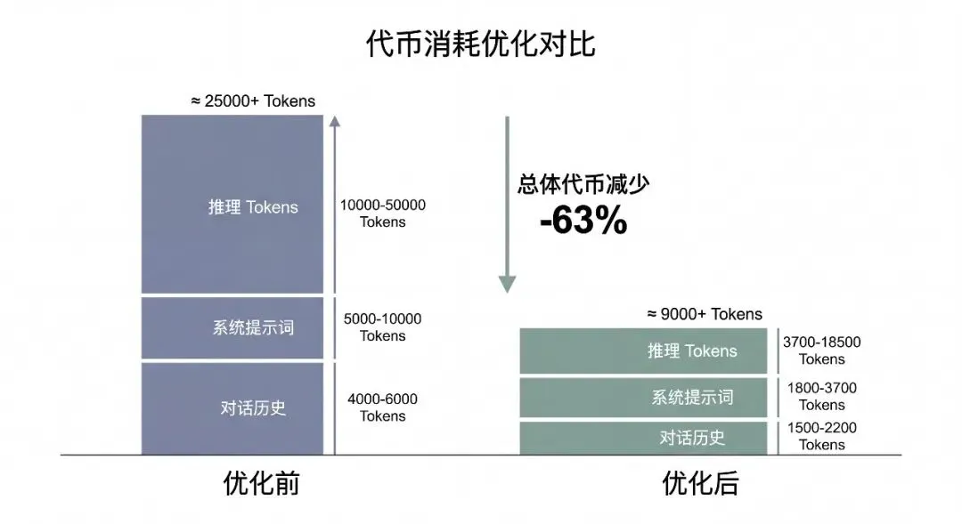 综合应用这些优化技术,实测综合 Token 消耗可降低约 63%。