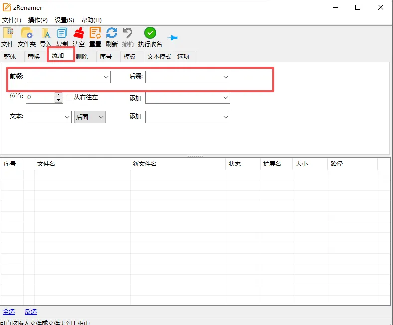 【使用方法】 1️⃣.文件批量添加前缀或后缀: 1.切换到"添加"标签页 2.选择"前缀"或"后缀" 3.输入添加的内容,查看预览效果 4.点击"执行改名"
