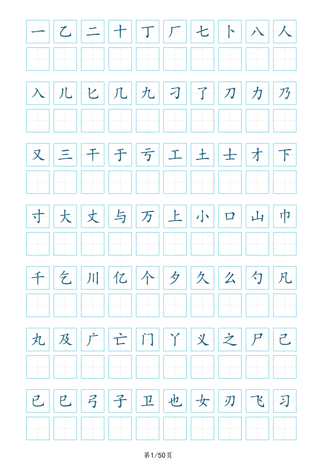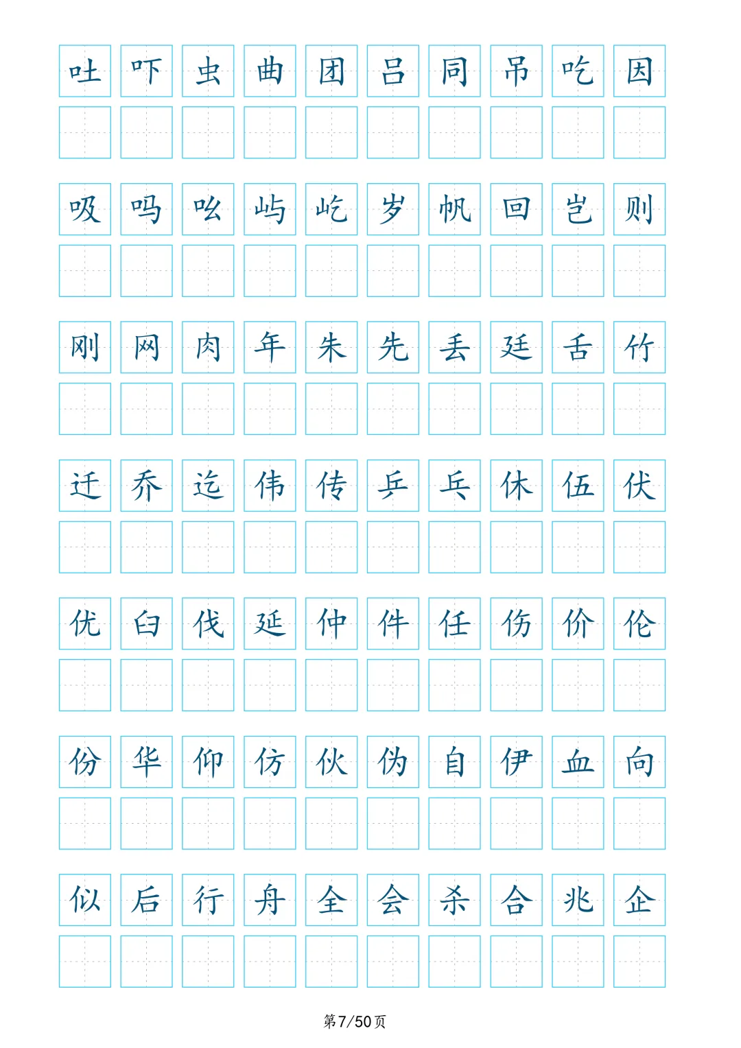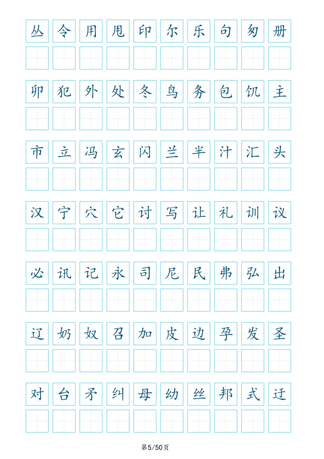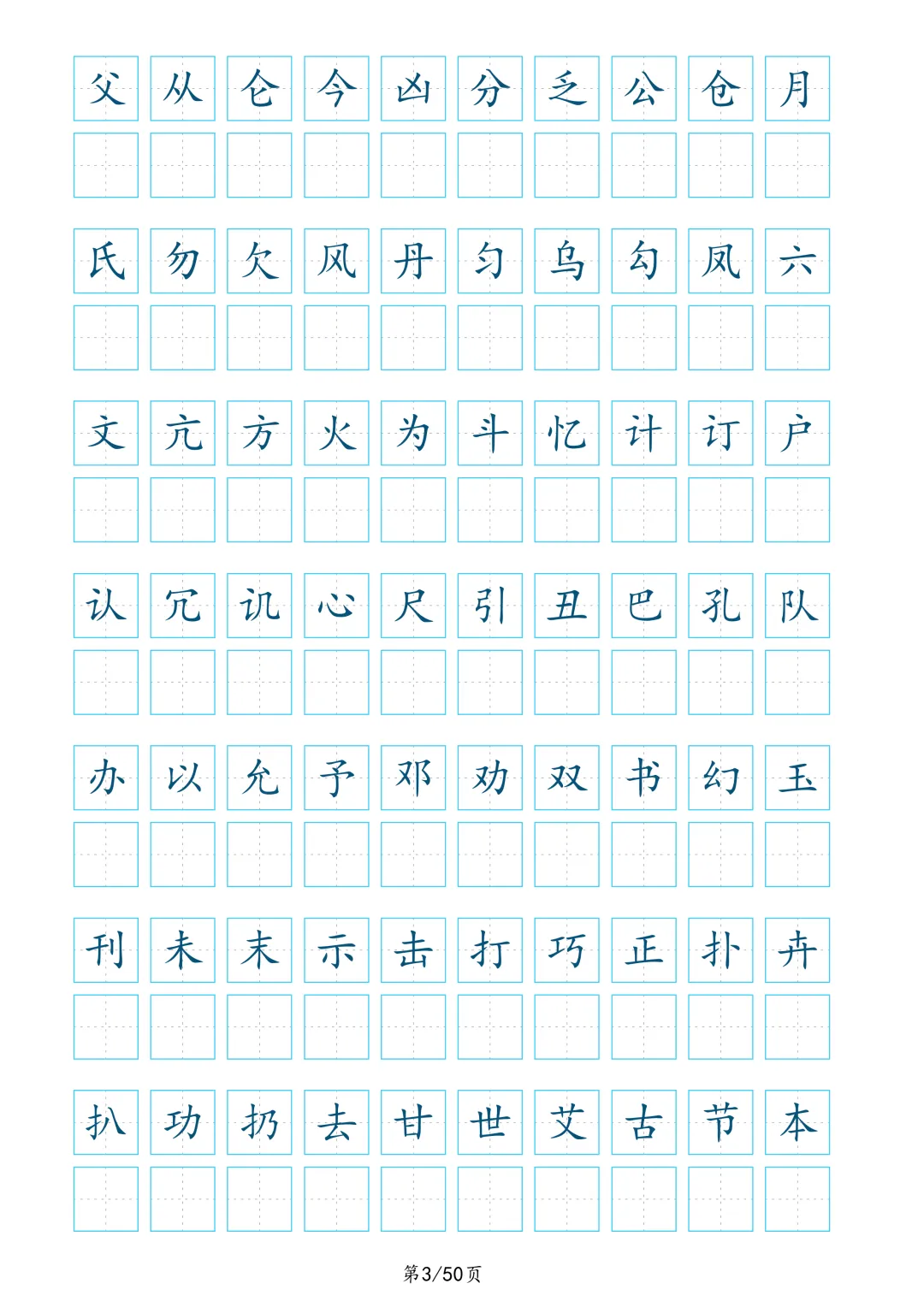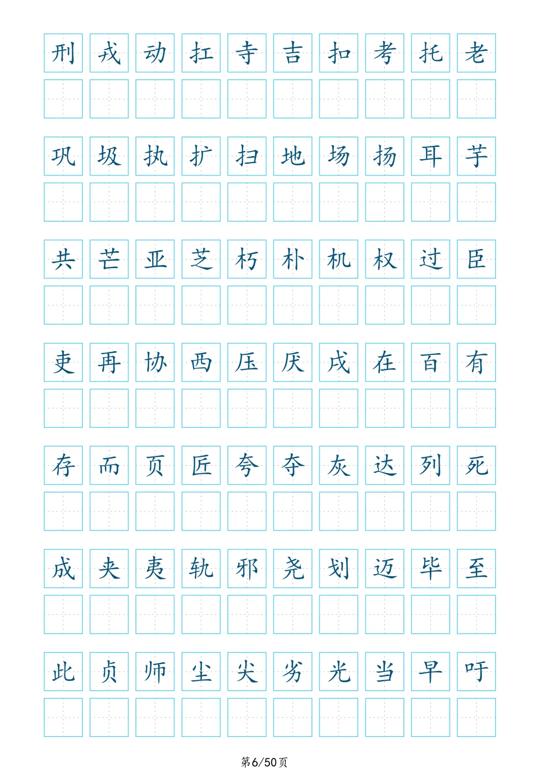 常用3500个汉字测试/手写模版参考 电子PDF50页