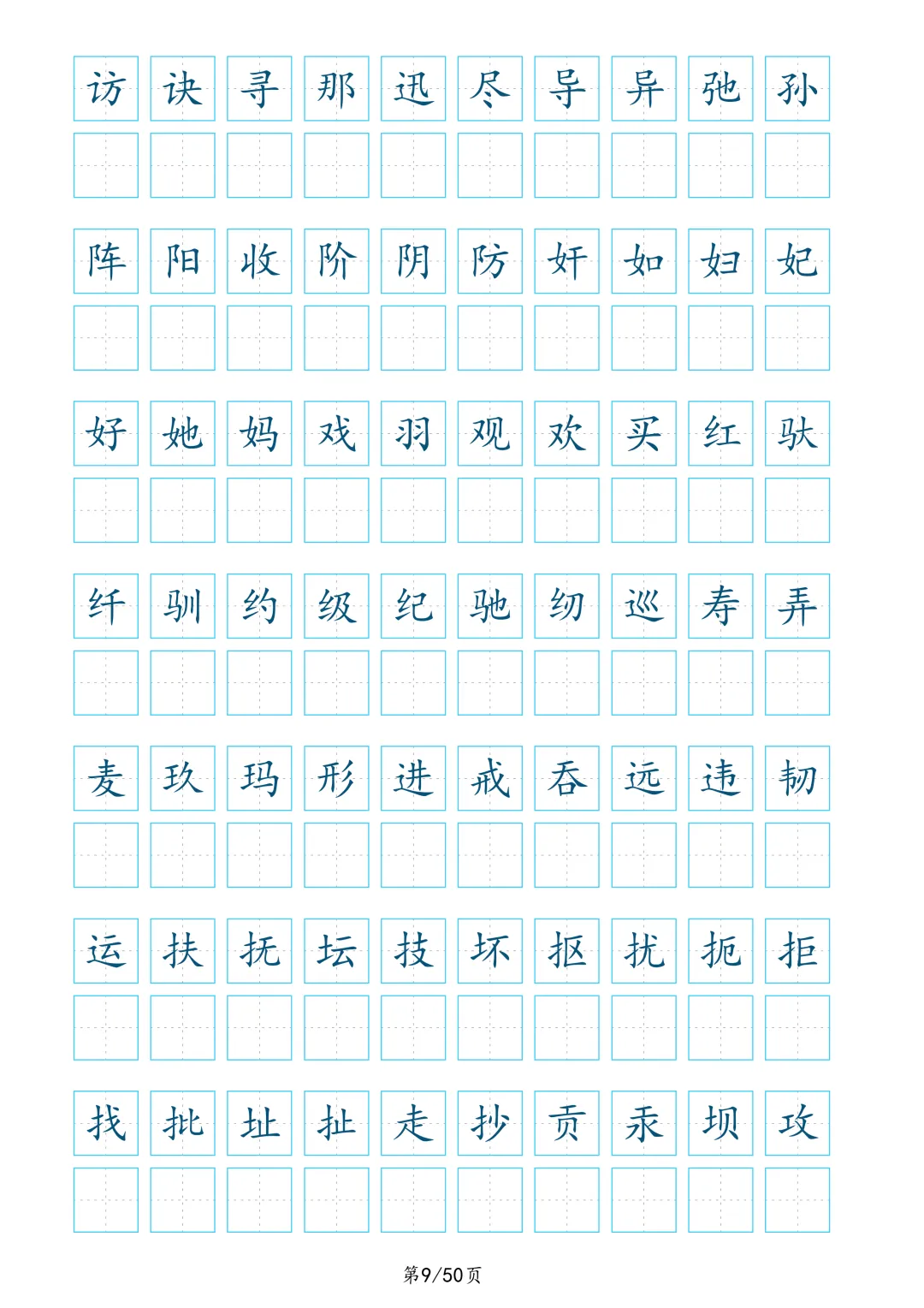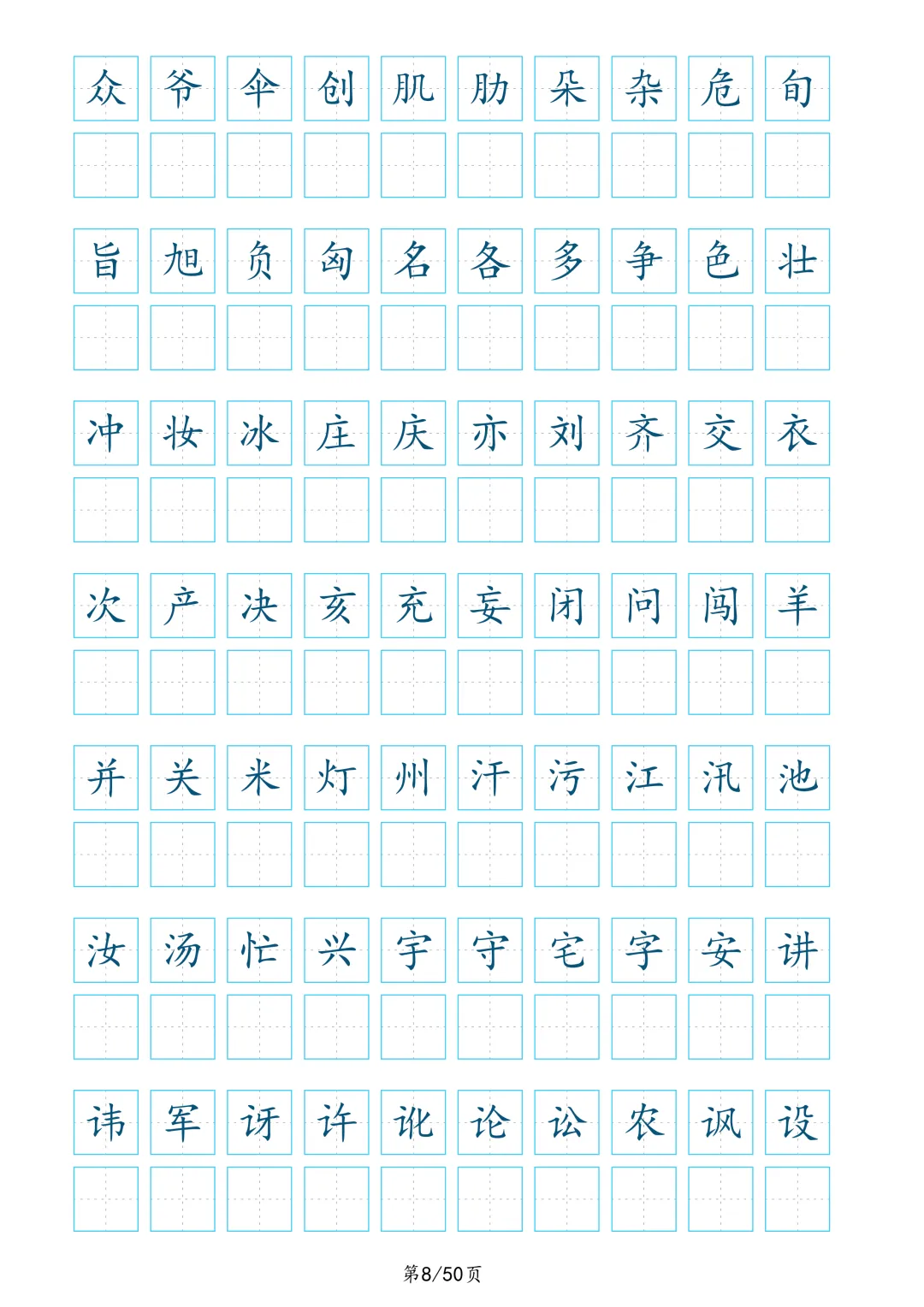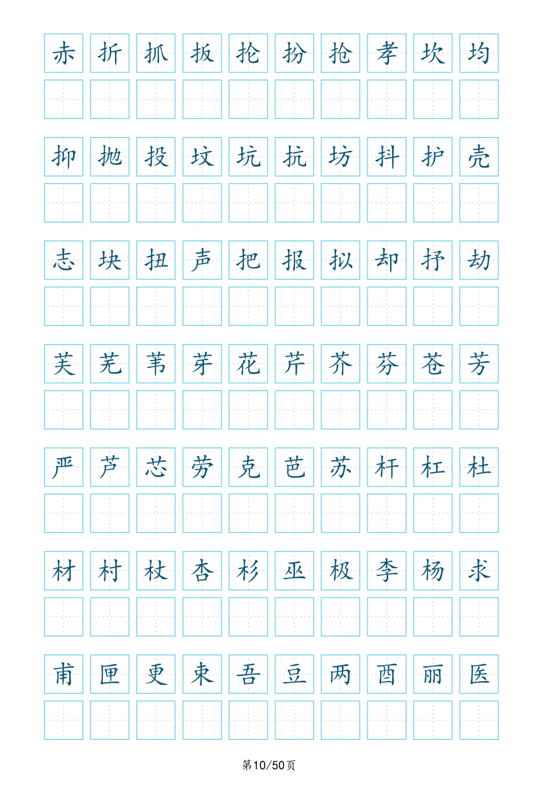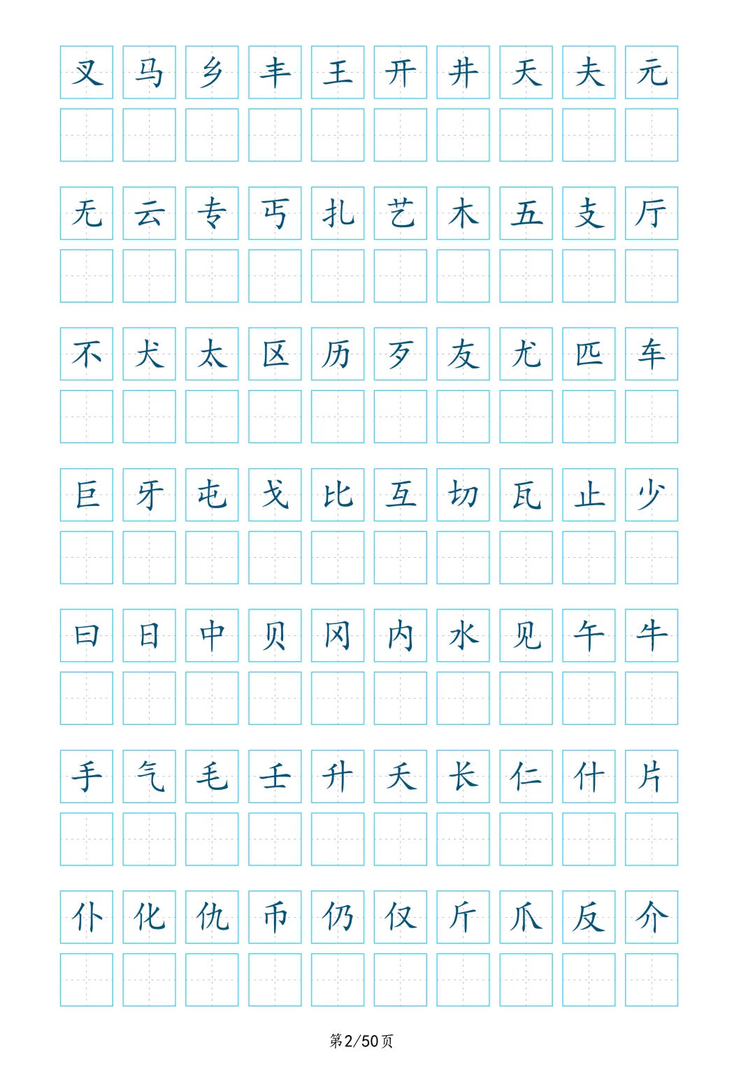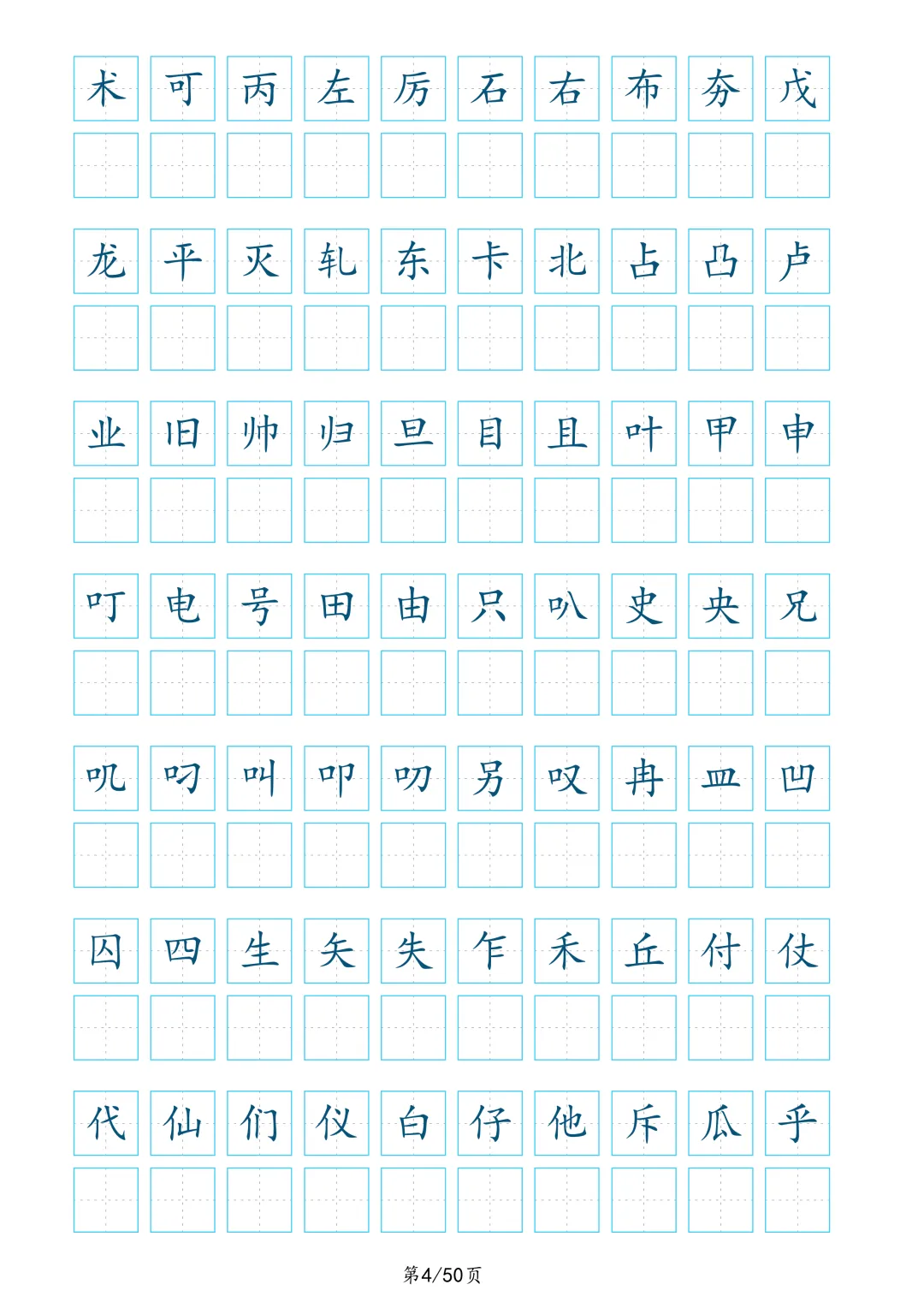 常用3500个汉字测试/手写模版参考 电子PDF50页