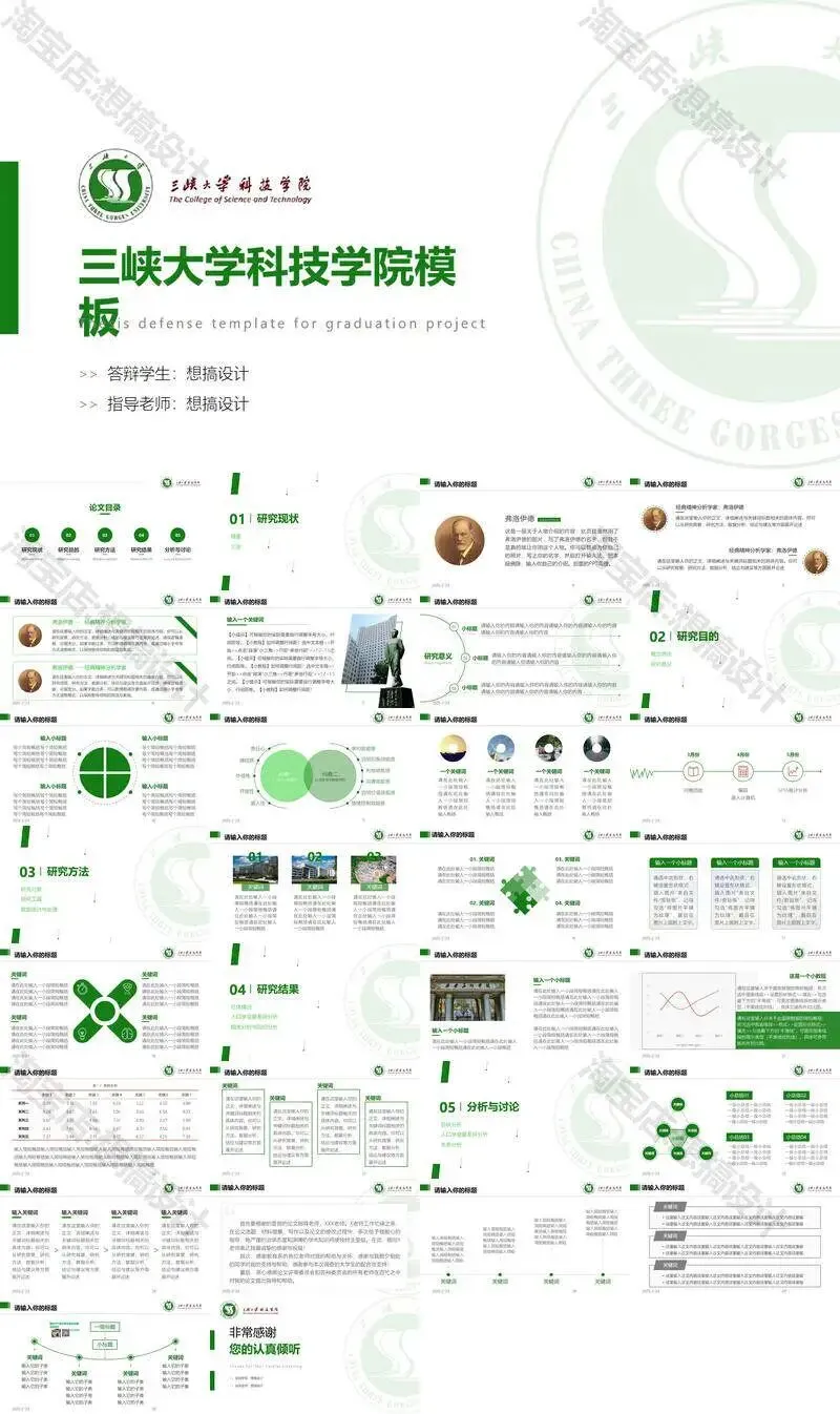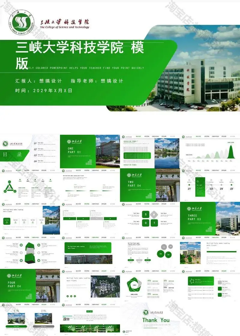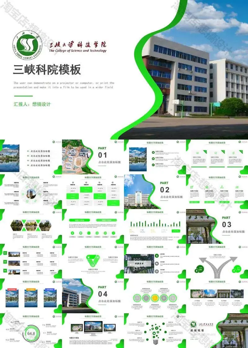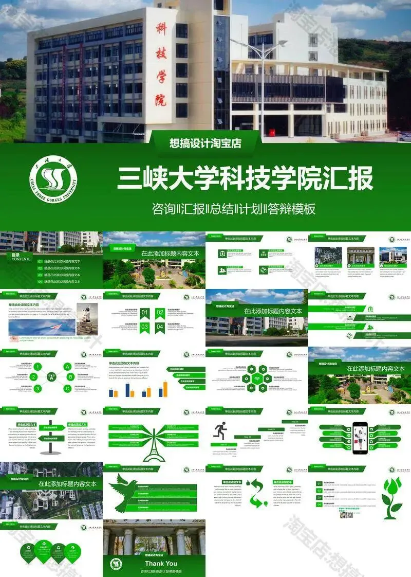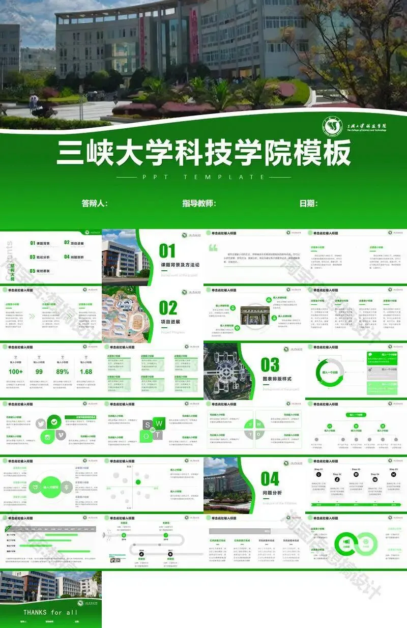 三峡大学科技学院毕业答辩PPT模板汇报幻灯片课件总结大学生