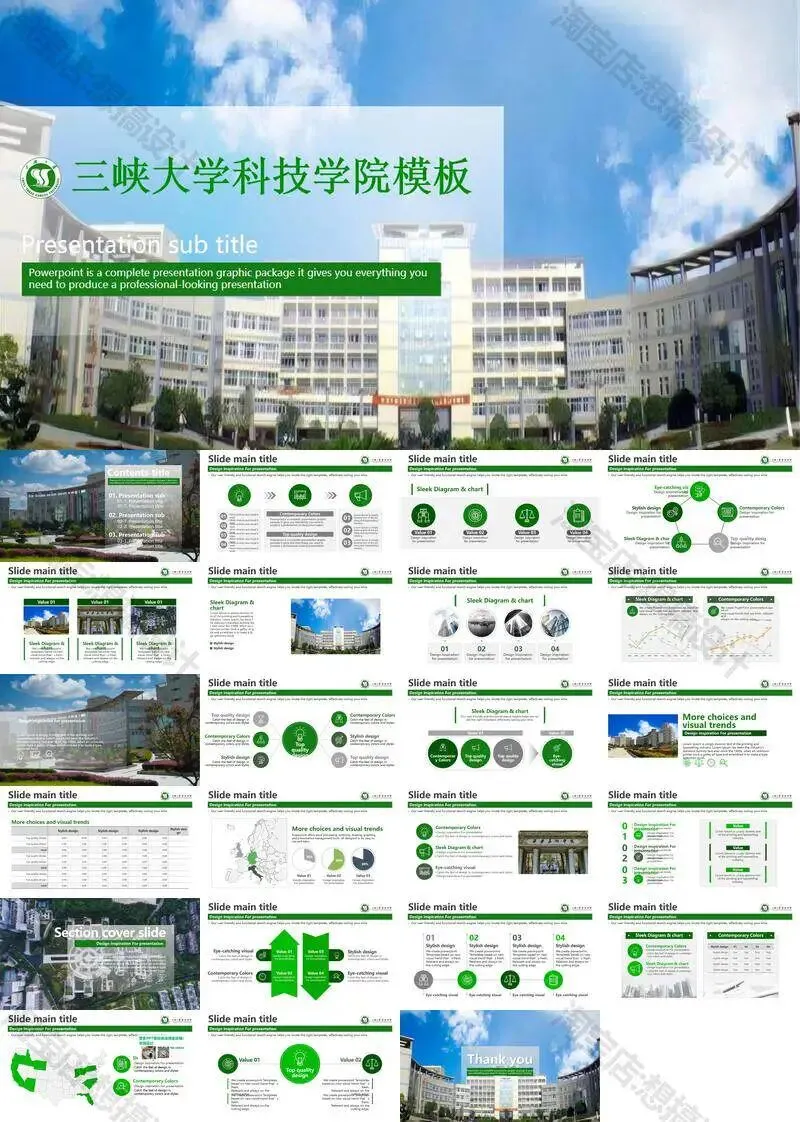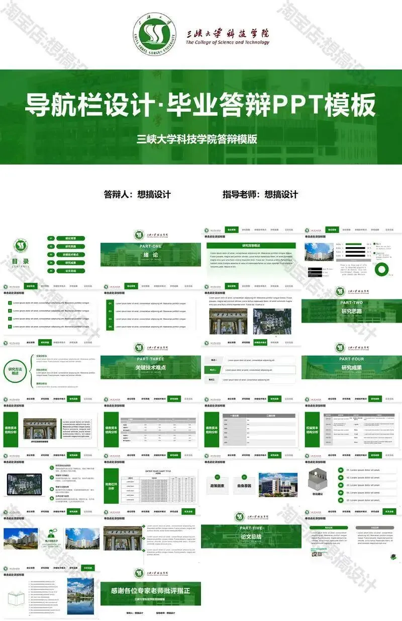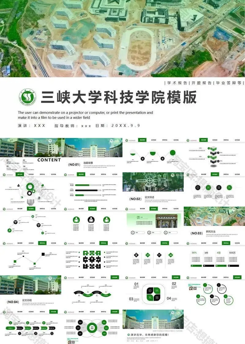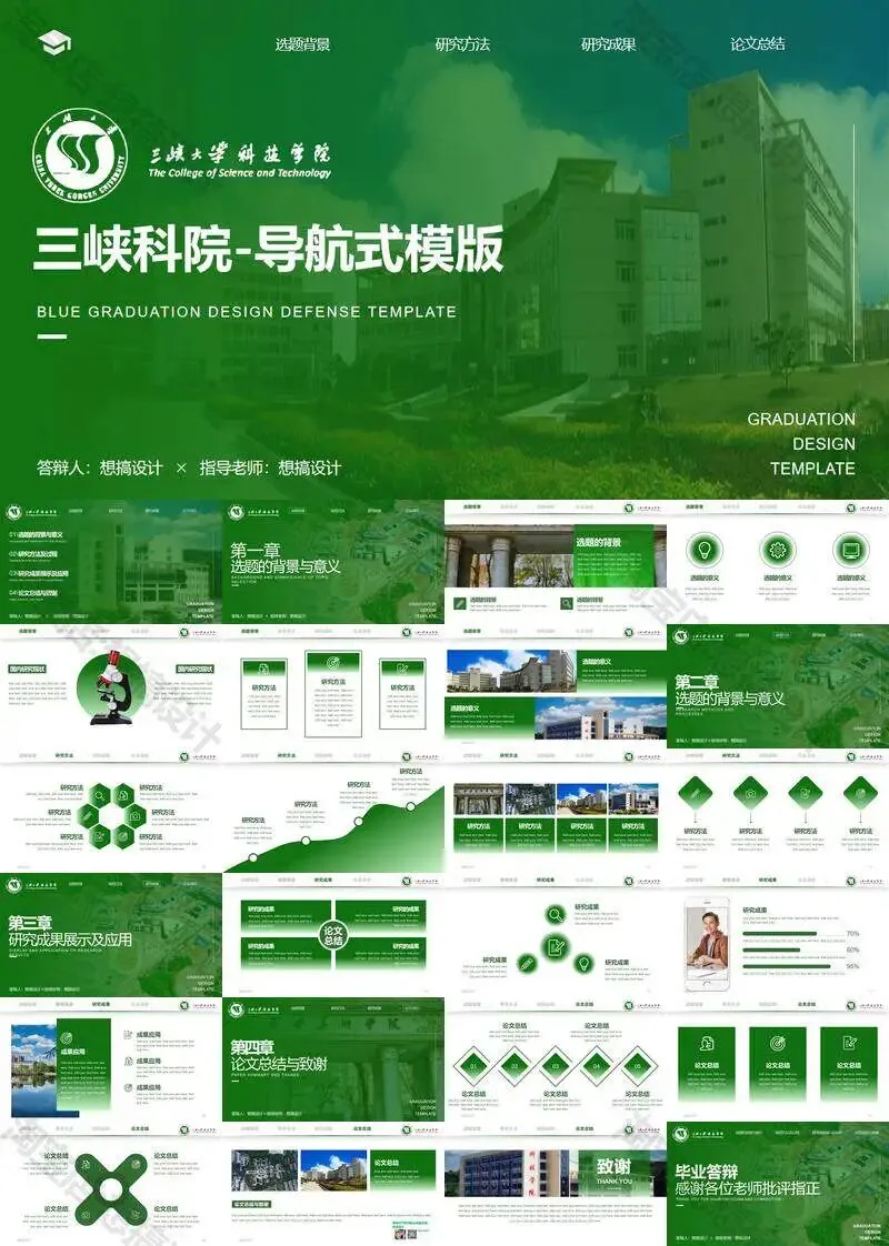 三峡大学科技学院毕业答辩PPT模板汇报幻灯片课件总结大学生