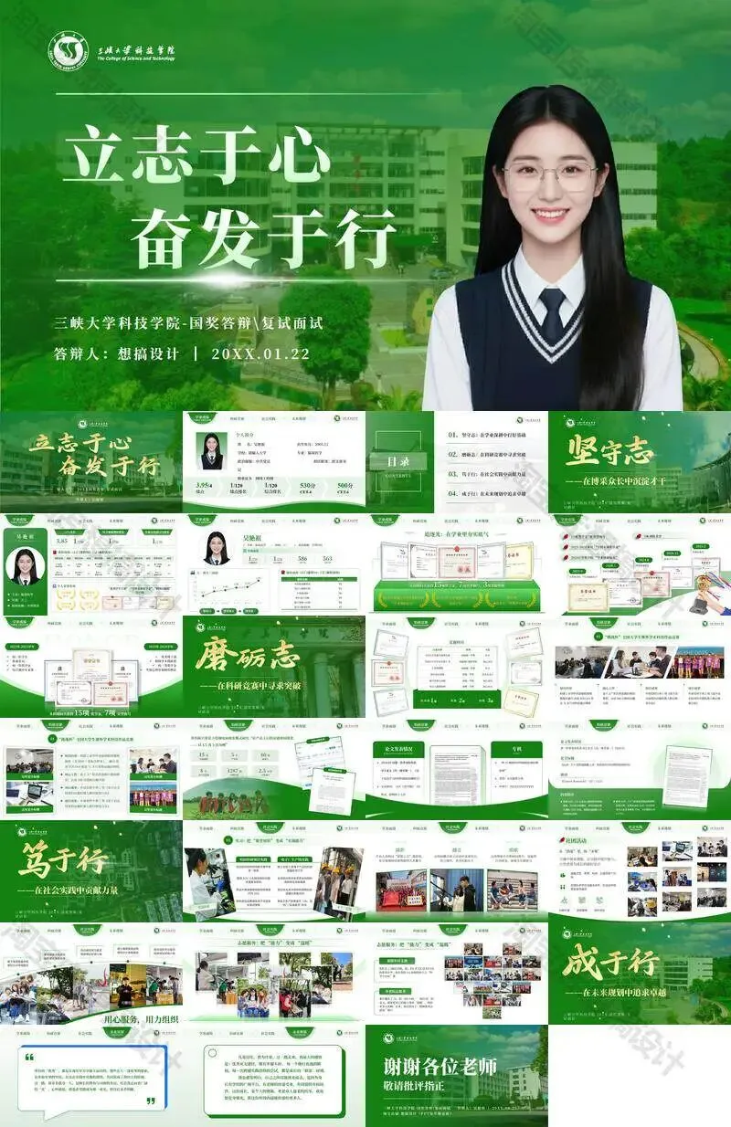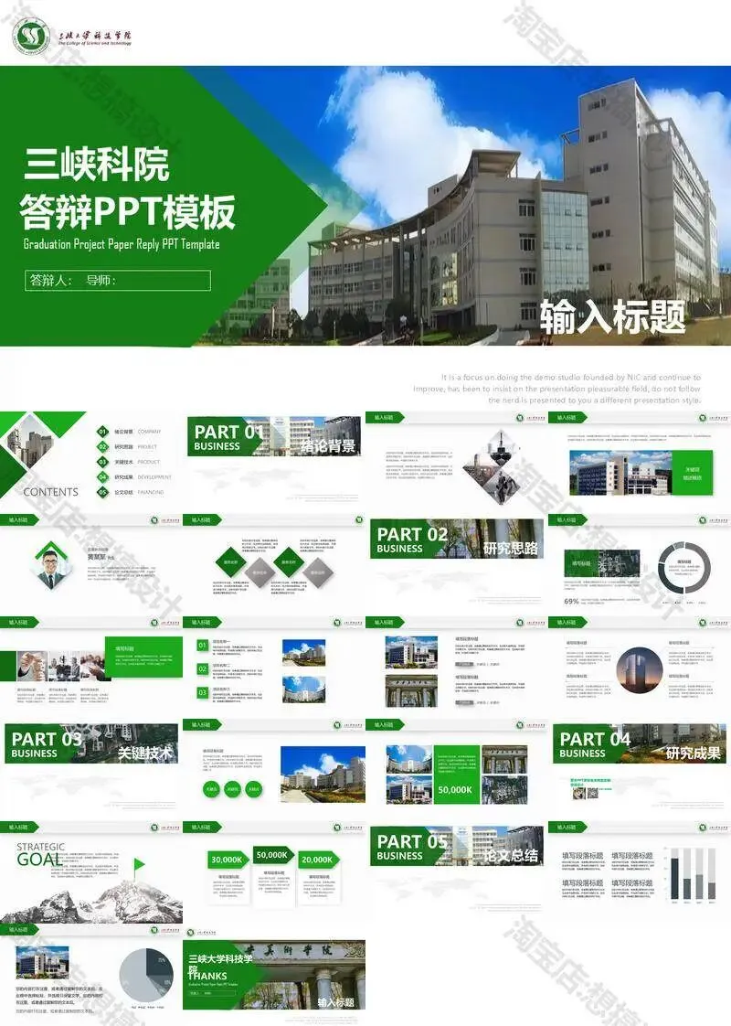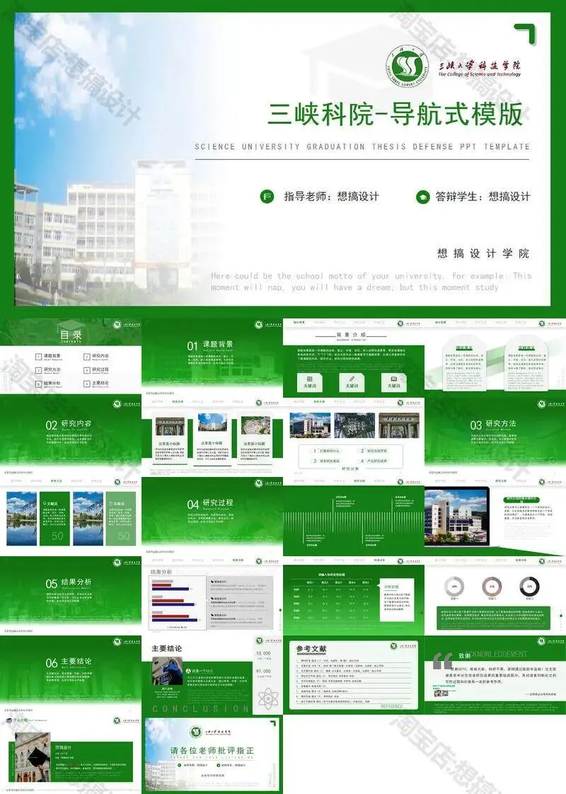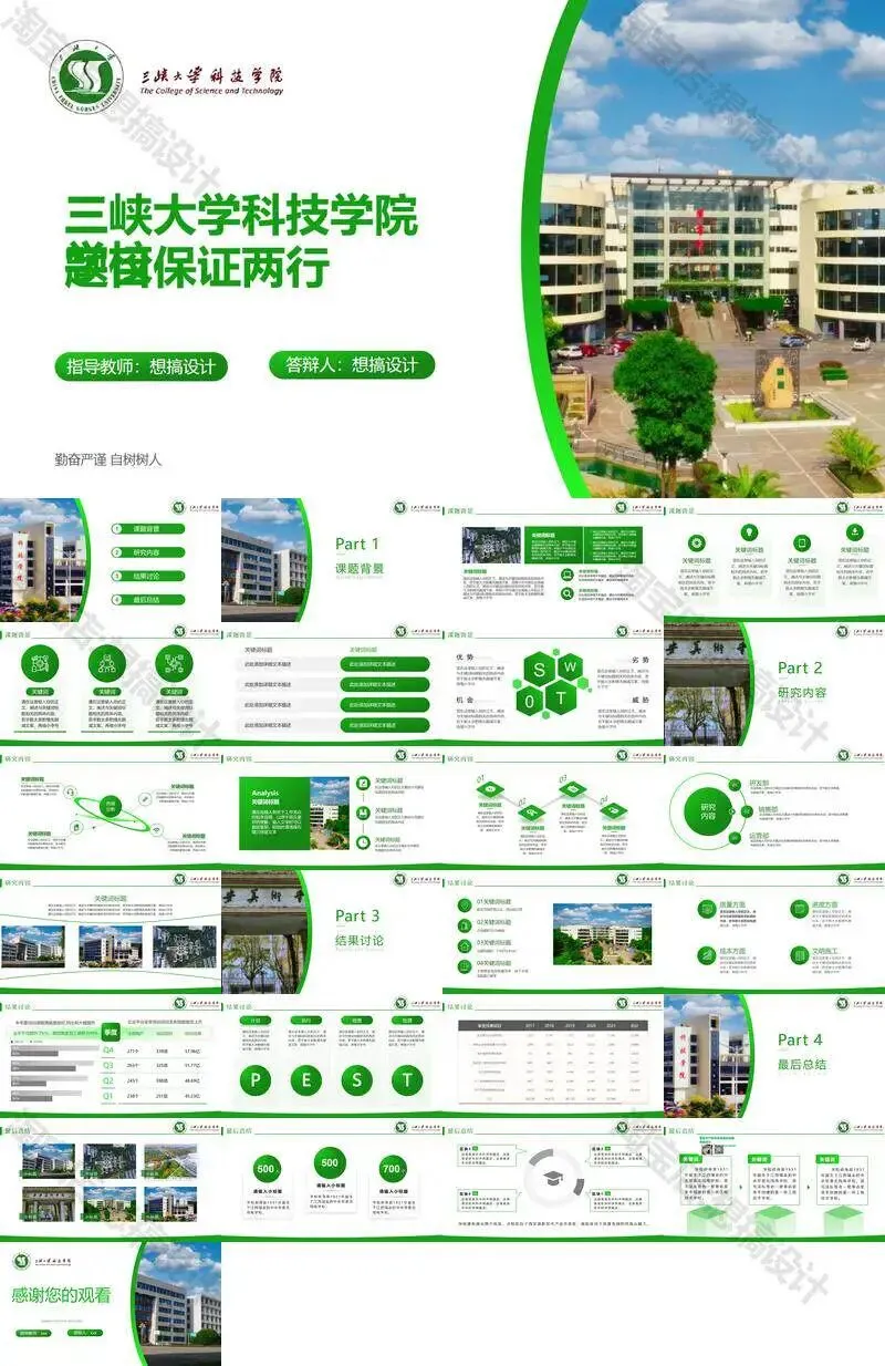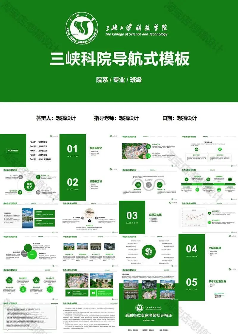 三峡大学科技学院毕业答辩PPT模板汇报幻灯片课件总结大学生