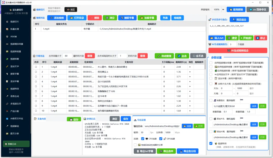 一键免费提取视频字幕,对接b站和腾讯云的字幕识别功能一键自动化剪辑长视频精华部分,识别视频高光时刻