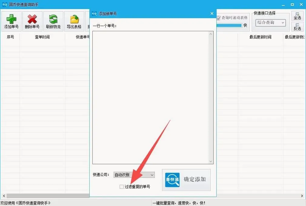 •问题1:批量查单时出现卡顿,该如何解决?:使用固乔快递查询助手时,可通过右侧设置区调节查询速度,适配自身办公网络环境;同时勾选“过滤重复的单号”,减少无效查询占用系统资源,即可确保查单过程流畅不卡顿。