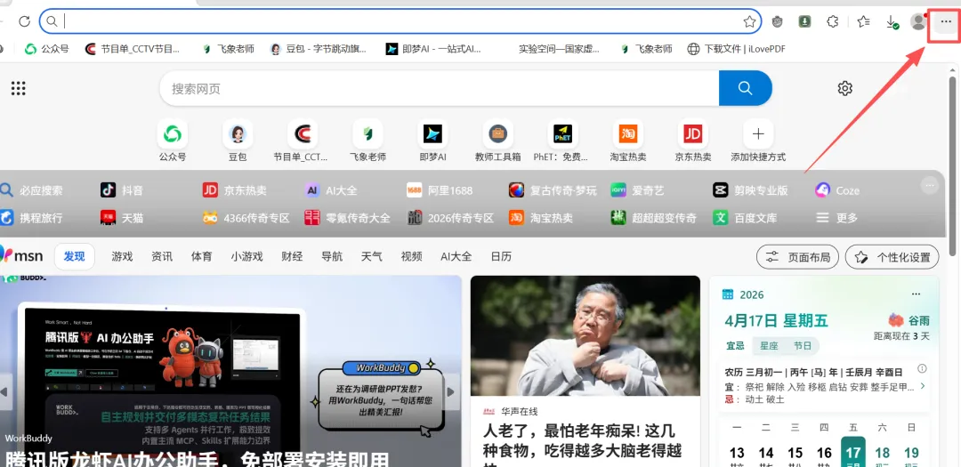 1、打开Edge浏览器,找到左上角的三个圆点点击进入。