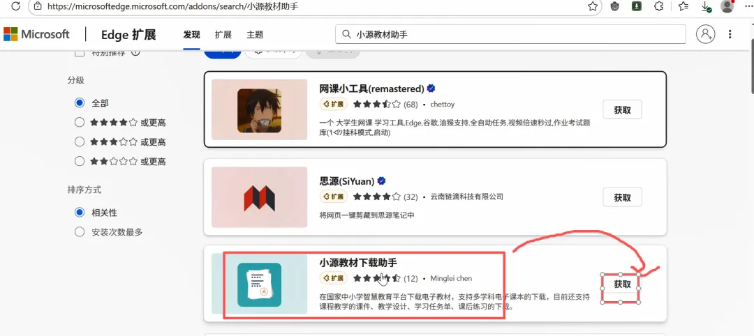 4、在搜索的插件中我们选择第三个小源教材下载助手.