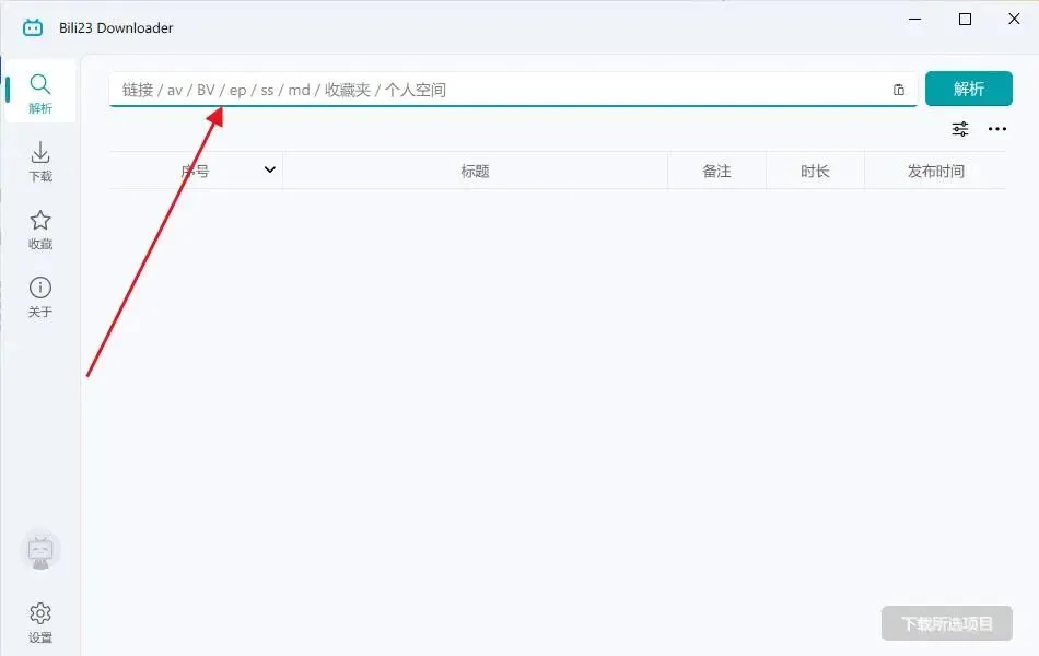 复制b站链接粘贴上,点击解析 即可看到需要下载的视频,点击下载所选项目即可