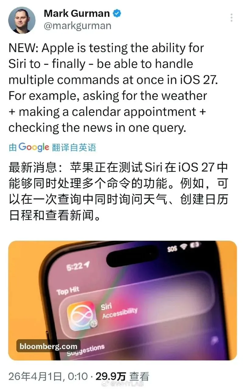 Siri 这回拆成一个单独 App,界面像信息那种泡泡式聊天,记录能留,文件能丢进去提问,多步指令是门槛,一句话串起来就能把查天气建日程发短信三件事办完。