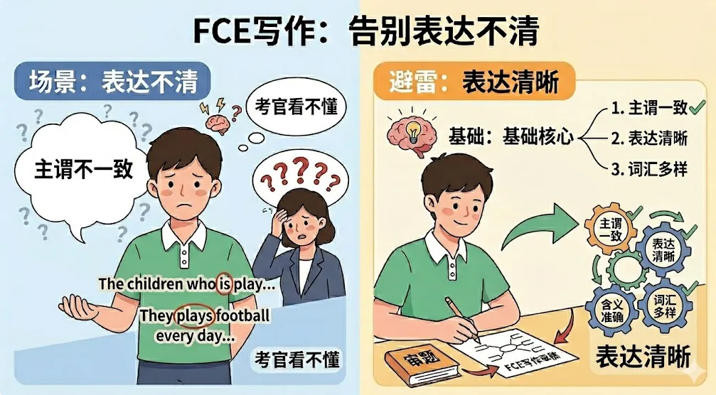 在FCE写作评分里,准确比华丽重要100倍。用错一个“高级词”,比用对一个简单词扣分更狠。