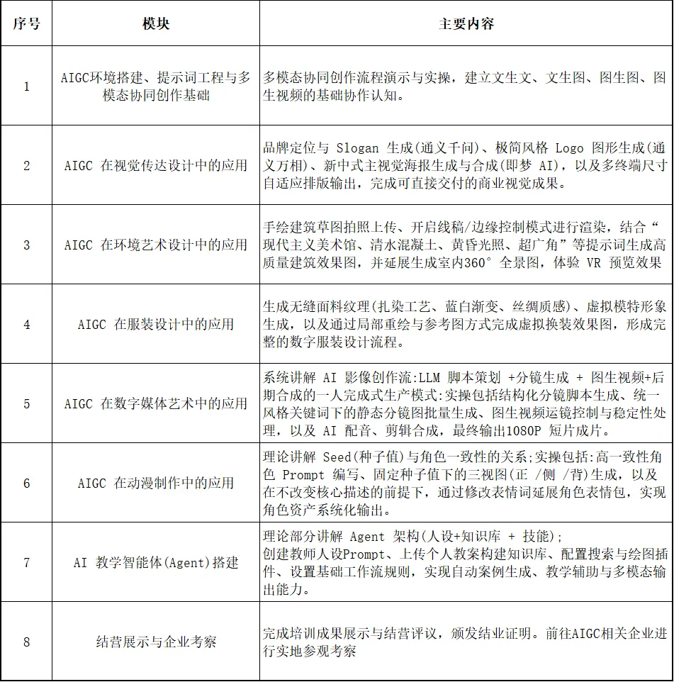 本次培训以“智能赋能,创新未来”为主题,积极响应国家发展战略,紧跟技术前沿,培养数字经济时代“技术+应用”复合型紧缺人才。通过人工智能内容生成实践,深入探索AIGC技术在教学、艺术设计等相关领域的创新应用,推进人工智能技术与产业需求的深度融合,构建“场景驱动-技术应用-实操创作”的全链条培养体系,为数字艺术高质量发展提供人才储备和技术支撑。